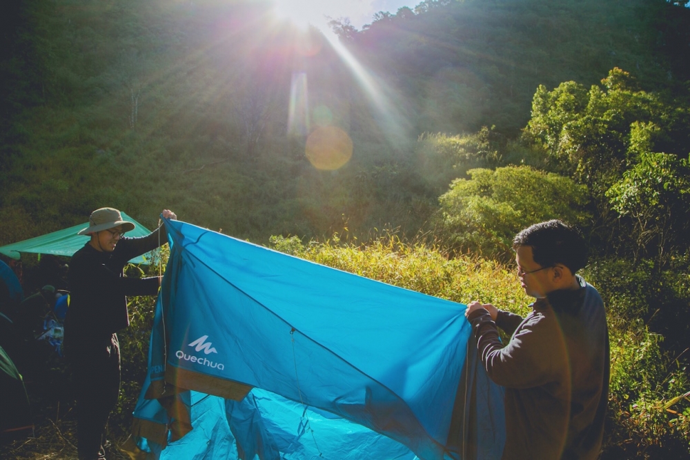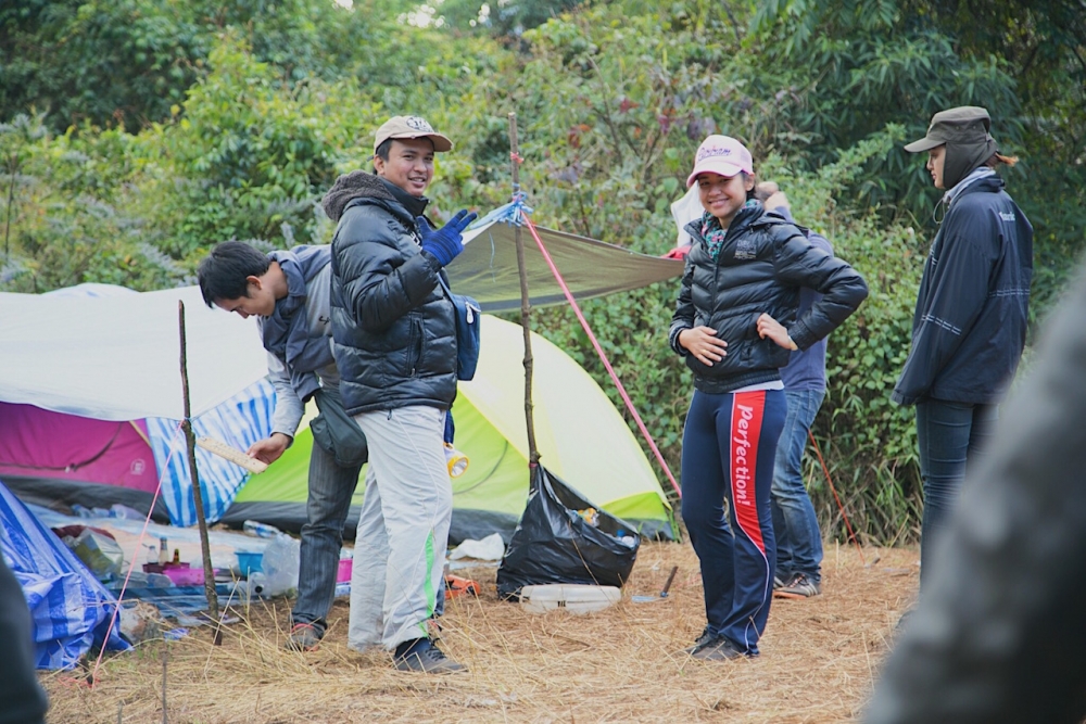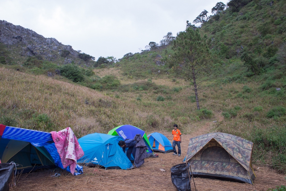 ส่วนที่เหลือซุกตัวอยู่ในเต็นท์เก็บแรงไว้เดินขึ้นยอดดอยหลวงตอนเย็น