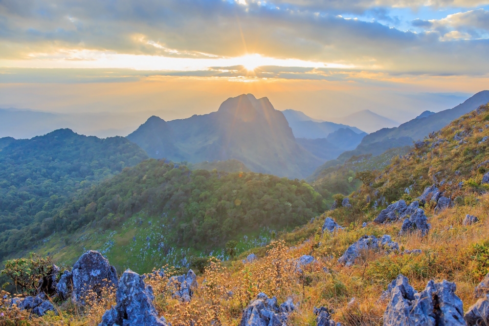 บางคนแรงเหลือก็เดินขึ้นไปดูพระอาทิตย์ตกที่ยอดดอยหลวงกัน ส่วนคนส่วนใหญ่นอนเอาแรงกันมากกว่า