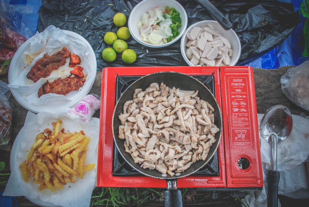 - อาหารต้องเตรียมไปกันเองทั้งหมดนะจ๊ะ ไม่มีร้านค้าด้านบนและตามรายทาง แต่ด้านบนก็ยังพอมีบริการจิ้มจุ่ม ขายเป็นชุดสำหรับคนที่ไม่ได้นำอะไรขึ้นไป ไม่ได้ใช้บริการในส่วนนี้ไม่รู้ว่าขายกันชุดเท่าไร แต่เตรียมไปเองชัวร์สุดๆ)