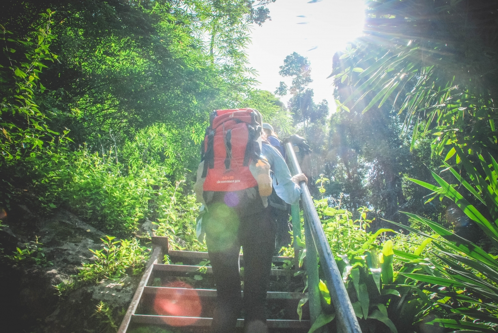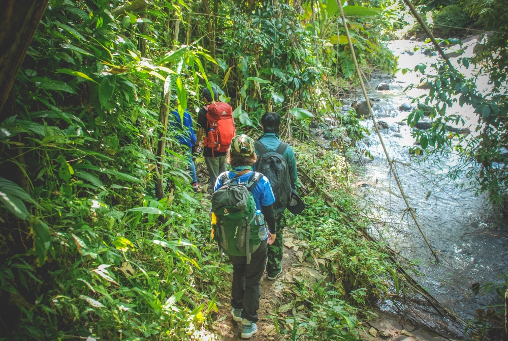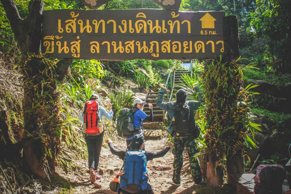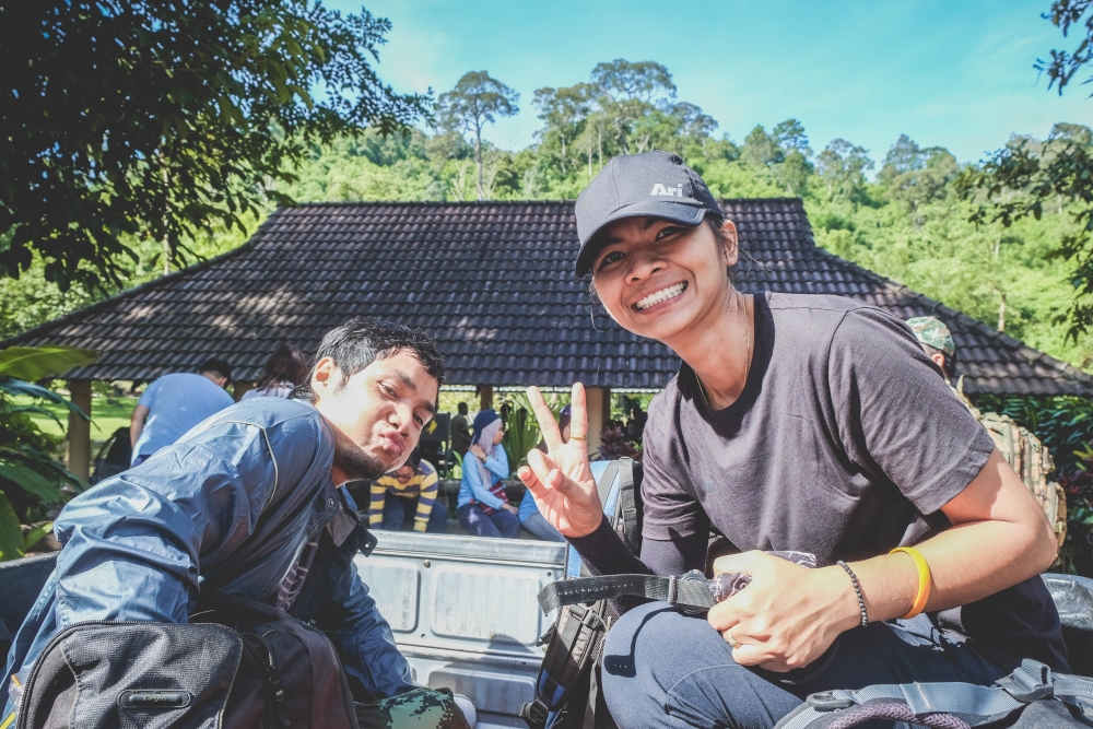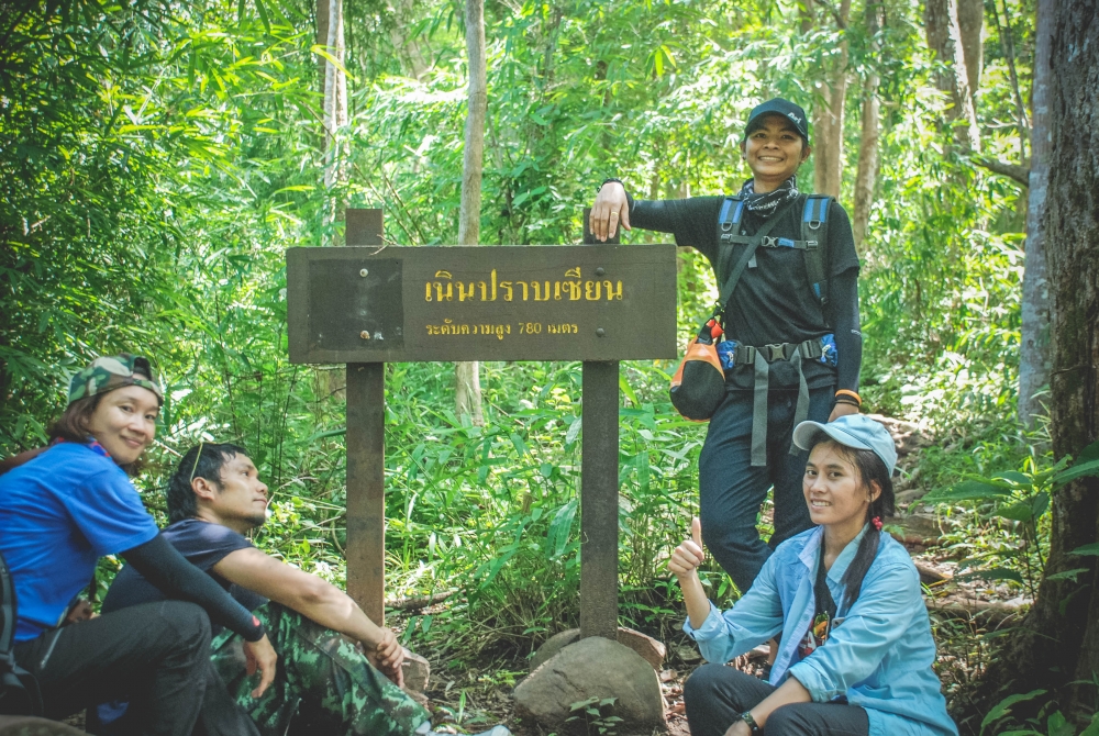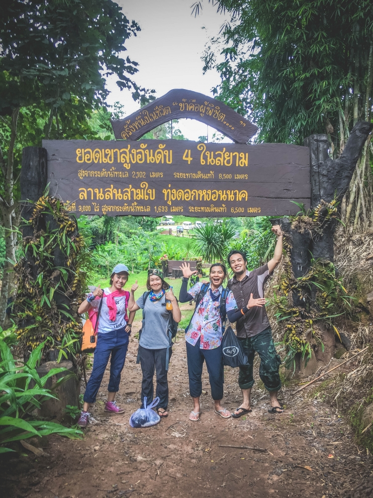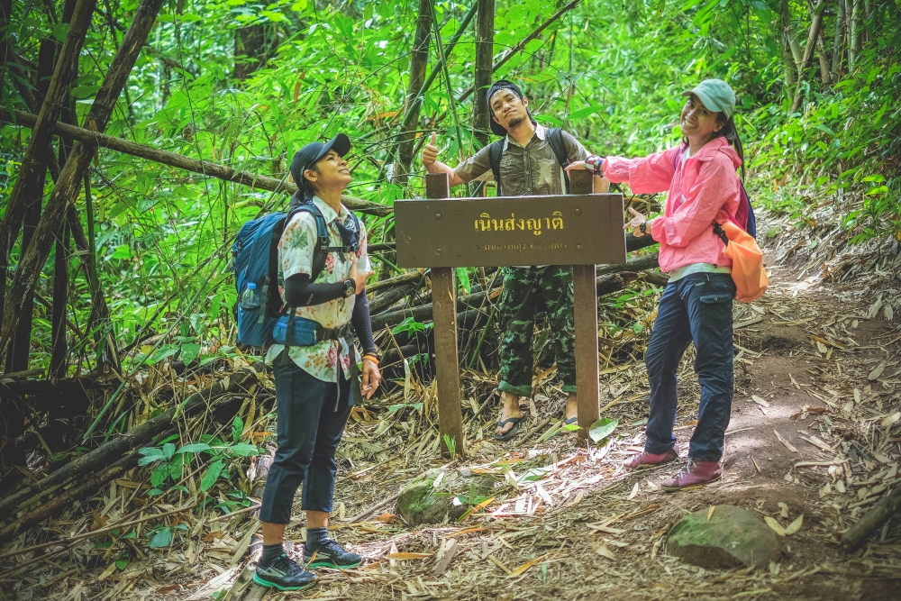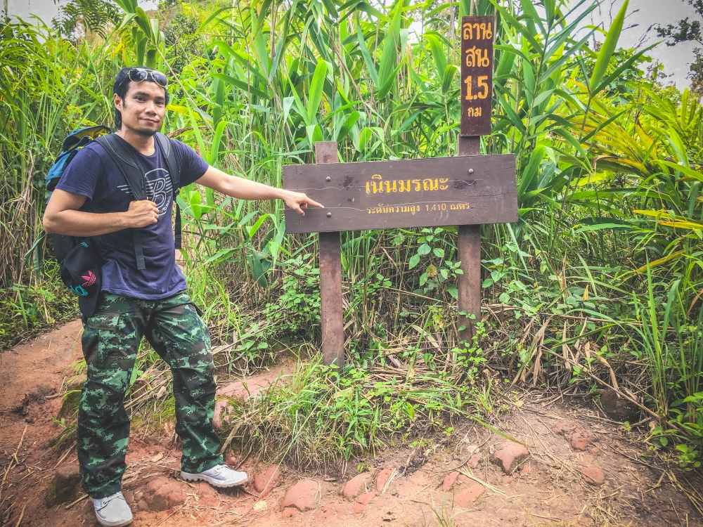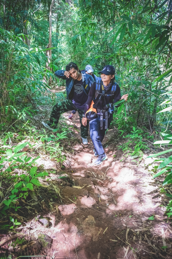 เมื่อทุกอย่างพร้อมพวกเรานั่งรถจากอุทยานมายังจุดทางขึ้น ระยะทางประมาณ 1 กิโล และเริ่มออกเดินกันตอน 9.30 น. ถึงจุดหมายปลายทางตอน 13.35 น.
