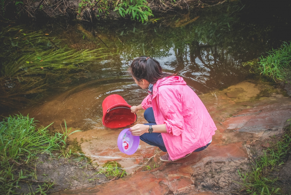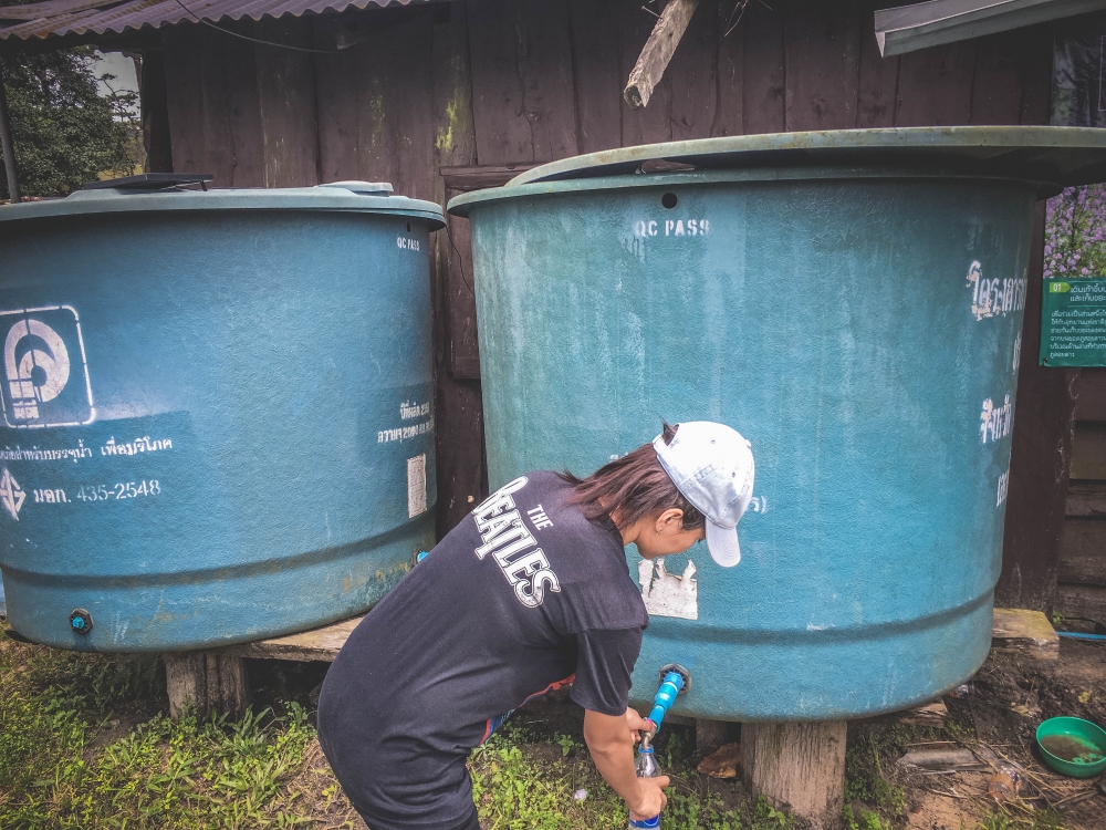 ตักน้ำ (ไม่ได้ให้ยืมฟรีต้องไปจ่ายเงินข้างล่างวันกลับ) จุ๊! ห้ามลงอาบน้ำล้างจานในลำธารนะจ๊ะเพราะเขาไม่ทำกัน