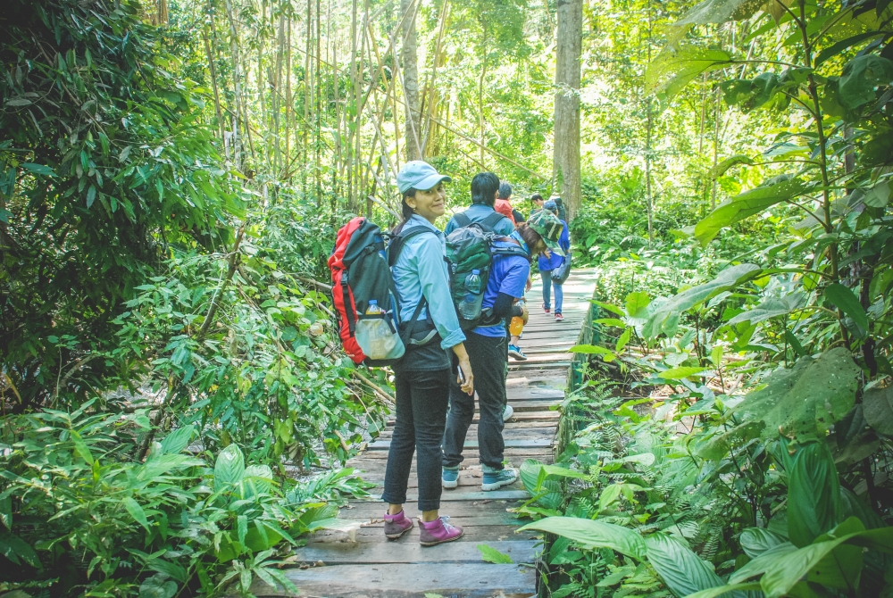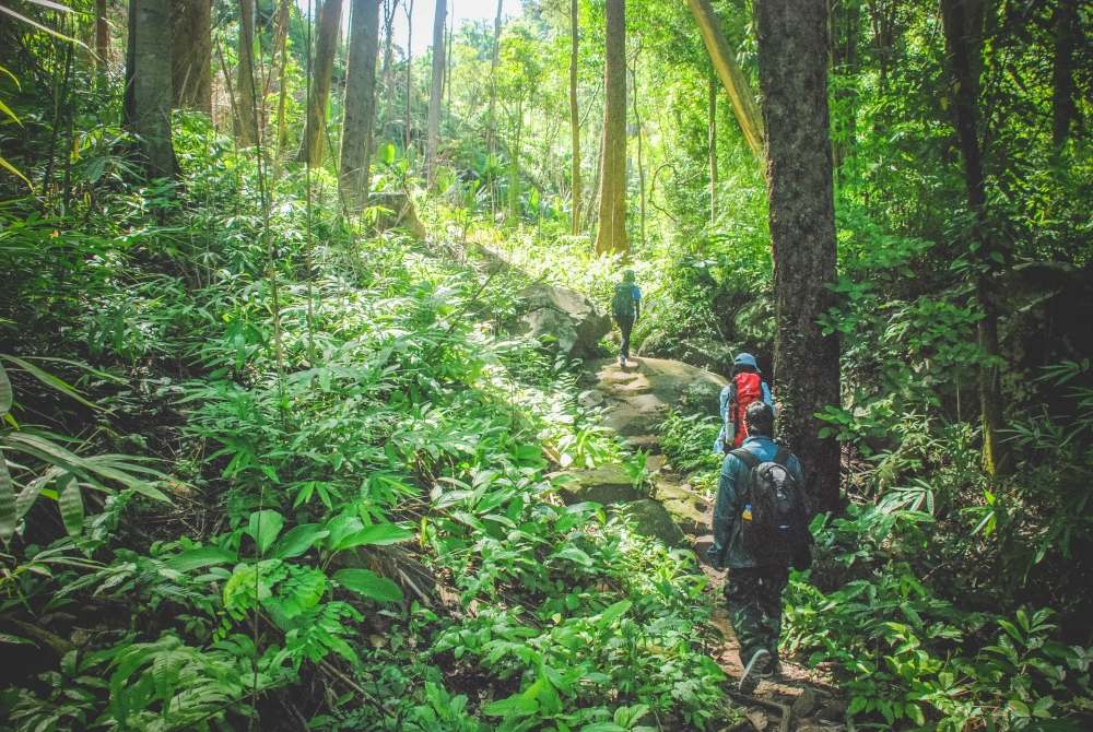 - รองเท้าที่ใช้ควรเป็นรองเท้าผ้าใบที่ใส่สบายเท้าและเหมาะกับการใช้ในการเดินป่าโดยเน้นที่มีดอกยาง