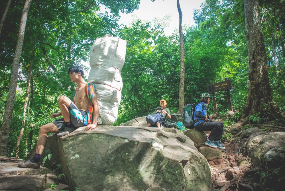 รอต่อคิวชั่งน้ำหนักสัมภาระ (กรณีจ้างลูกหาบ)