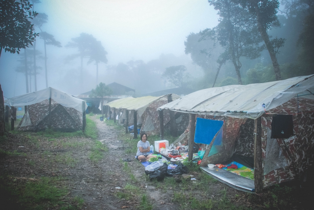 นอนรอเวลาที่จุดบริการท่องเที่ยว ณ อุทยานแห่งชาติภูสอยดาว