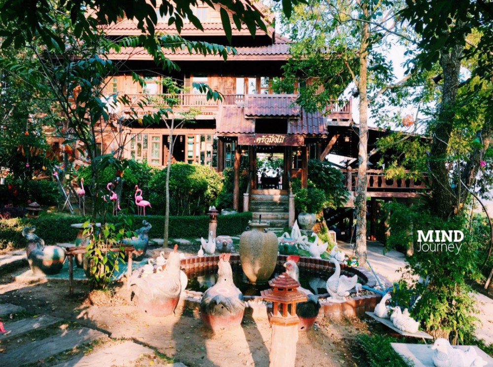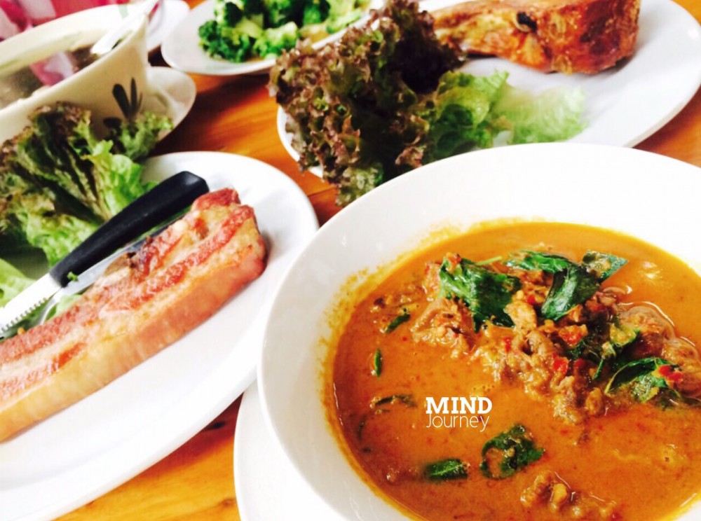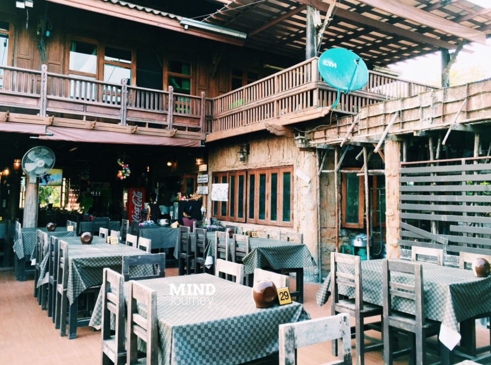 : : มื้อเย็นวันนี้ ฝากท้องที่ "ครัวมิ่งไม้" ร้านอาหารไทย ตั้งอยู่ตรงข้ามที่พักพอดิบพอดีแบบเดินถึง เป็นเรือนไทยสองชั้นท่ามกลางธรรมชาติและต้นไม้