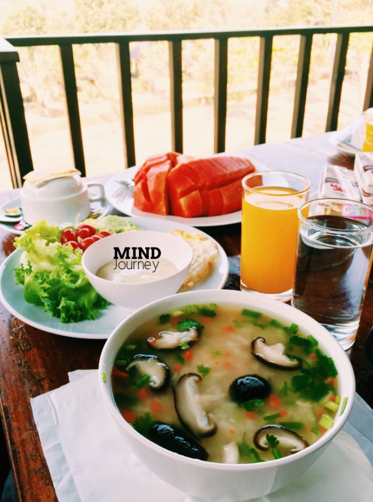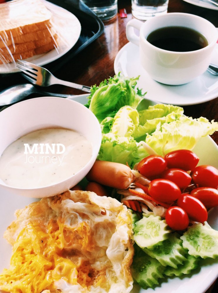 เช้านี้กับอากาศกำลังสบาย สายลมเย็นๆ พัดวูบเป็นระยะ ยังไม่ได้ล้างหน้าล้างตาพนักงานก็นำอาหารเช้ามาเสิร์ฟถึงห้องพัก นั่งกินกันตรงระเบียงกับชมวิวยามเช้าส่วนตัวไปด้วย แหม 'เพลิน' อย่าบอกใครเชียว :)