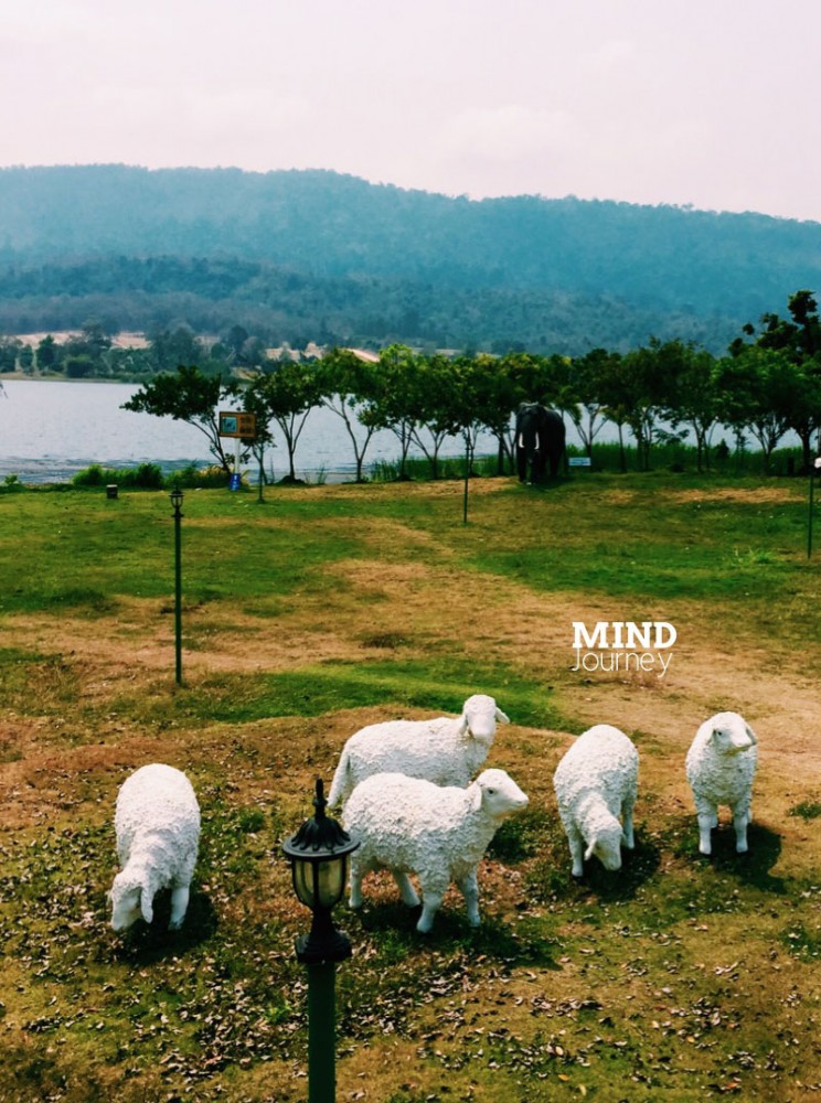 แค่ออกจากที่พัก แล้วขับย้อนออกมาทางเดิมไม่ไกลเท่าไรเลย (เส้นเขาแผงม้า) สั่งน้ำผลไม้กับเค้กนมสด รสชาติใช้ได้และถ่ายรูปจากฝั่งร้านกาแฟ ถ้าอยากให้อาหารฝูงแกะ เข้าไปดูแบบใกล้ๆ มีค่าเข้าเพื่อข้ามสะพานไปยังด้านใน