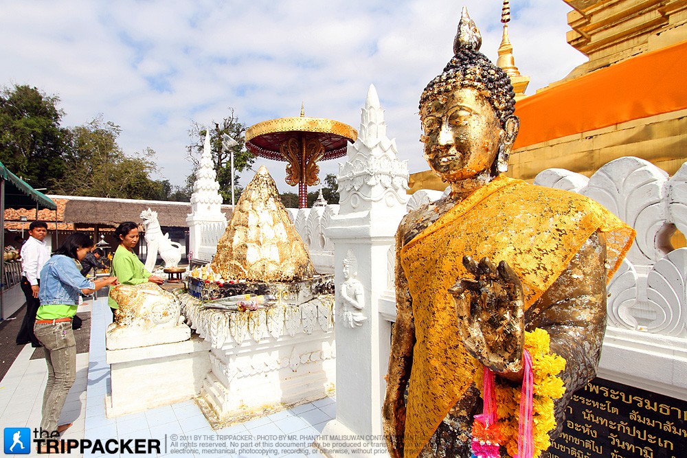 There are many points of interest to see at this sanctuary. The pagoda, which has a bell-shape, stands 55.5 meters on a square pedestal 22.5 meters wide on each side. It is painted in gold that the Lanna people believe brings good luck to those of the rabbit year. If you are born in the year of the rabbit, praying there will bring you merit. You will see many rabbit figurines, of all sizes, nearby. In addition, the temple has laid a path around the Buddha image for those who would like to walk around with a lit candle.