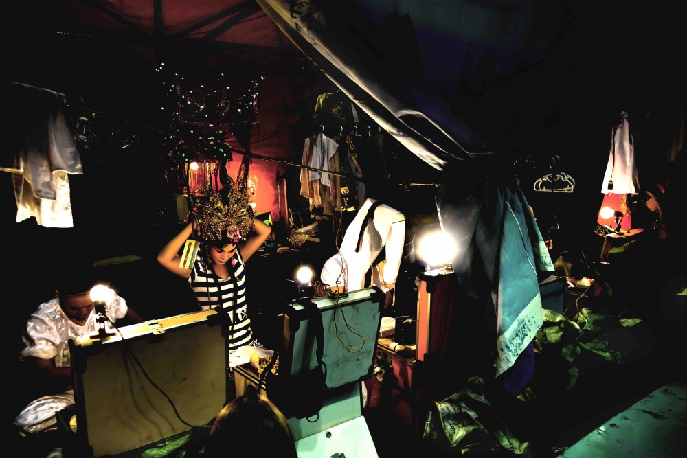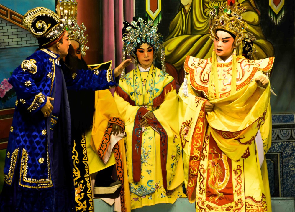 ไม่นานนัก โรงละครก็เปิดฉากขึ้น การแสดงที่ผู้คนมากมาย(เชื้อสายจีน) ต่างรอชม ผมเองก็ต้องลงมาด้านล่างเพราะเตรียมถ่ายรูปท่ามกลางมหาชนที่เข้าชมมากมาย มโหรีจีนเสียงดังกังวาล ตัวแสดงทั้งหลายต่างออกมาโลดแล่นบนเวทีเหมือนชีวิตจริงในช่วงเวลาหนึ่ง