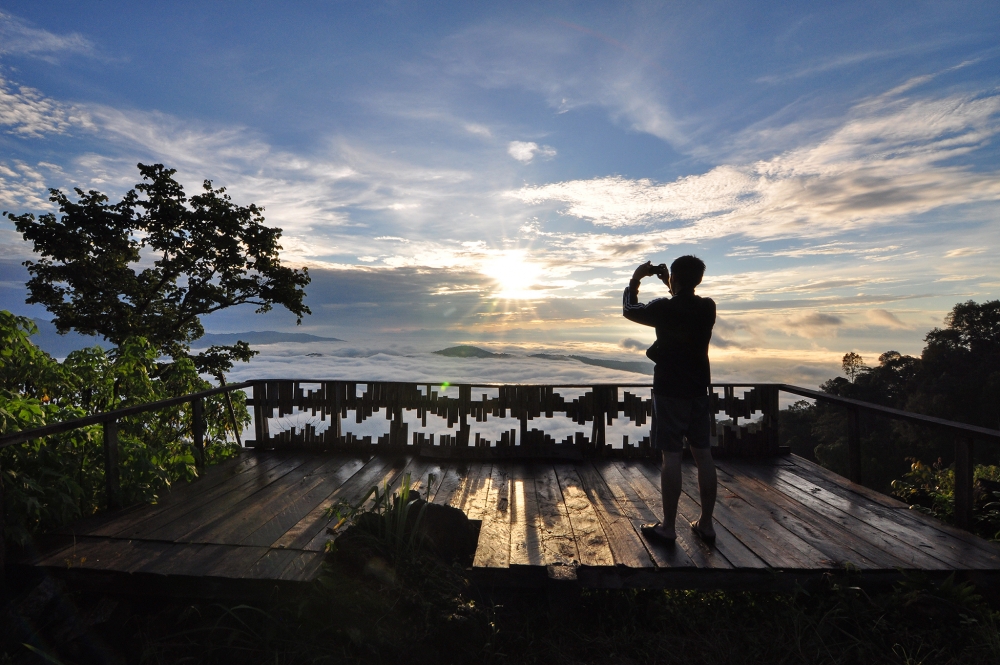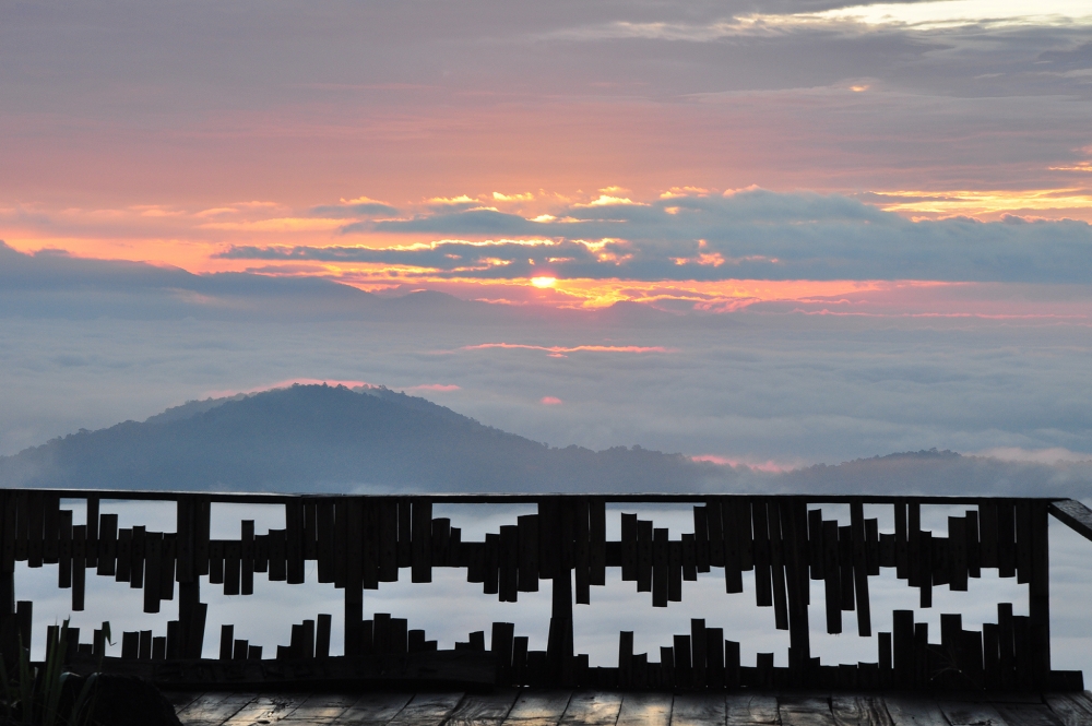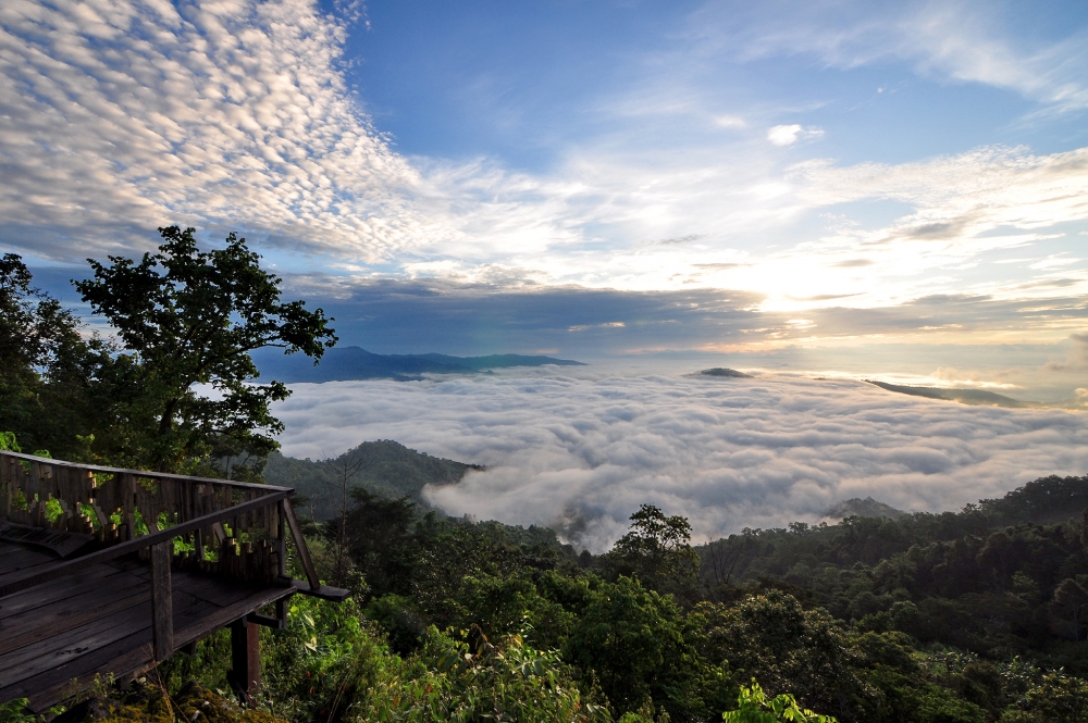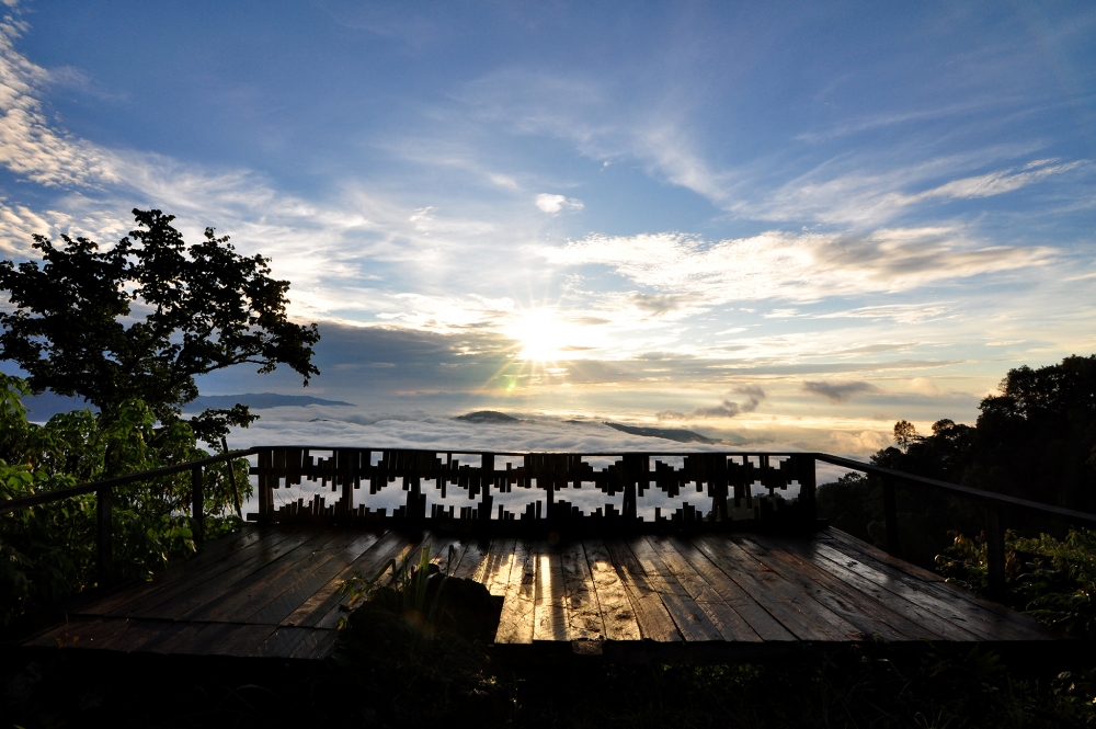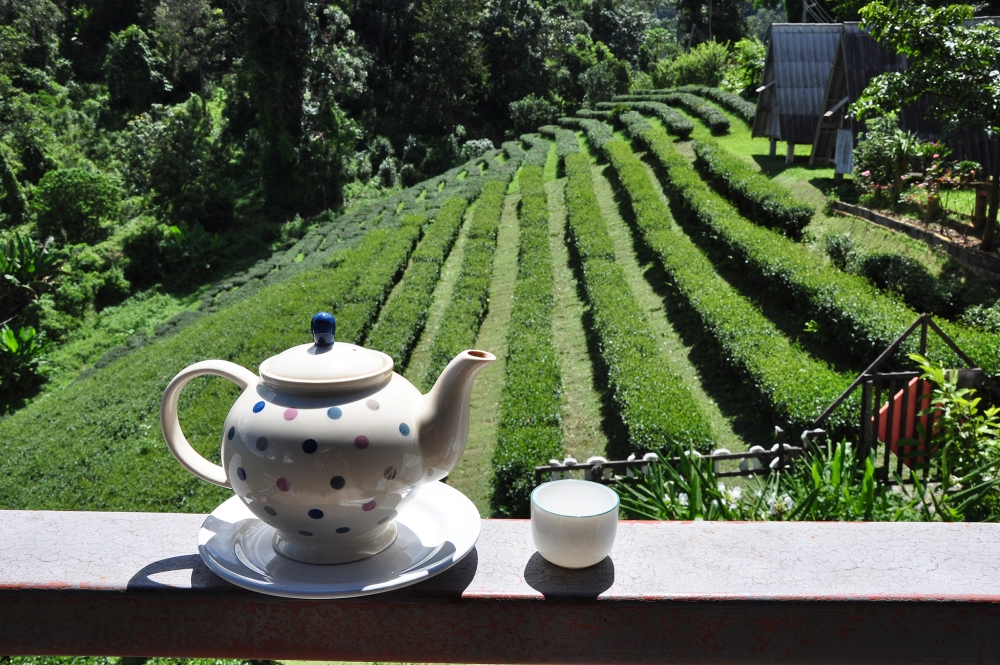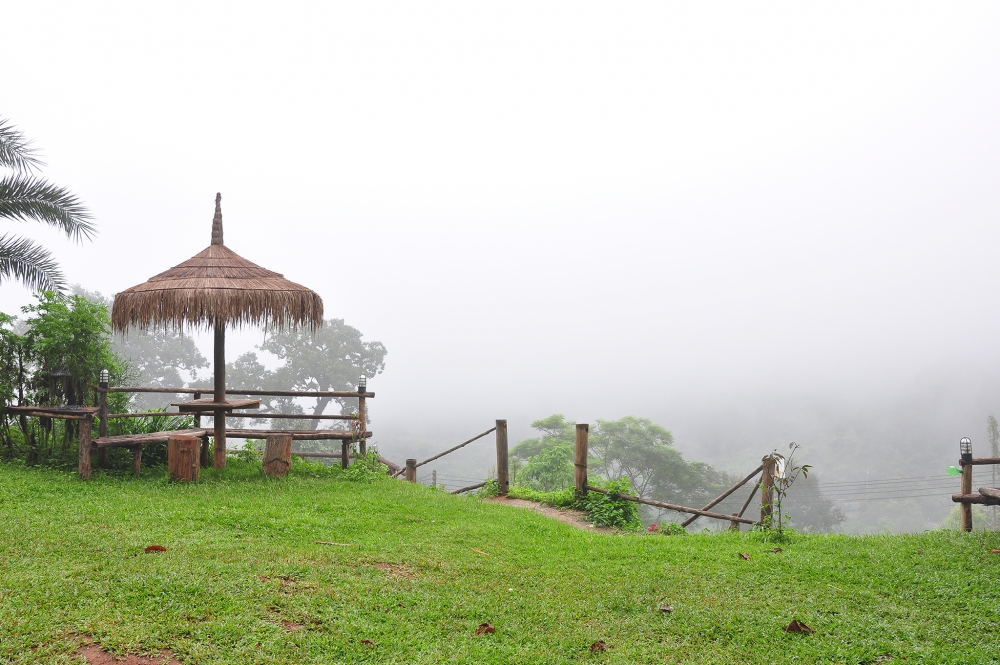 สามารถจิบชาชมวิวที่ระเบียงได้ และถ้ามาช่วงเช้าอาจจะได้เจอสายหมอก