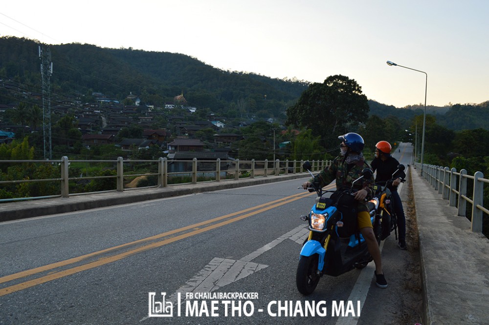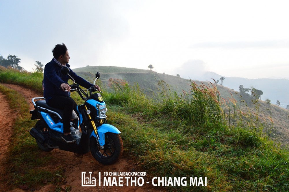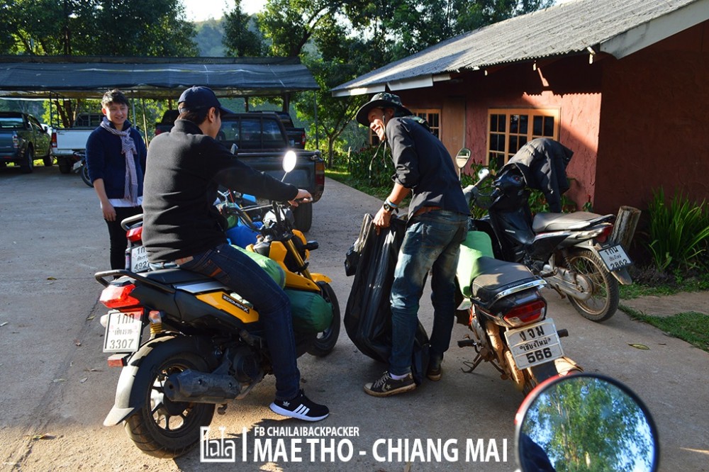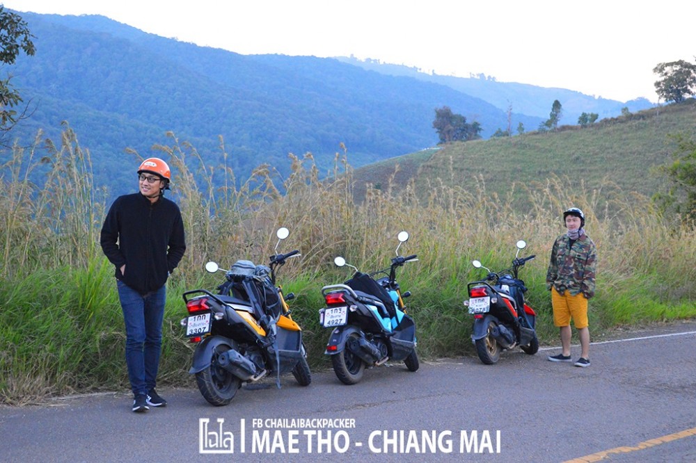 ซึ่งในตอนแรก.. ก็มีความคิดว่าจะเช่ารถยนต์ขับเหมือนกัน เพราะ ราคาเช่ารถยนต์แล้วหารค่าเช่ากัน ก็ไม่ได้ต่างกับการแยกเช่ามอเตอร์ไซค์คนละคันแบบนี้สักเท่าไหร่ แถมนั่งสบายกว่า และ ถนนหนทางไปถึงโครงการหลวงแม่โถก็ขับสบายไม่ได้ลำบากอะไรมากมาย แต่.. ระหว่างทางจากโครงการหลวงไปเที่ยวสถานที่ต่างๆ ที่อยู่โดยรอบนั้น ถนนบางช่วงขรุขระ แคบ ชัน และอันตราย จำเป็นจะต้องใช้ รถ 4WD ในการสัญจร ซึ่งถ้าขับรถยนต์ไปก็อาจจะต้องทิ้งรถไว้ที่โครงการหลวง แล้วใช้บริการเหมารถ 4WD จากทางโครงการหลวงไปอีกที ดังนั้น จึงคิดว่าเช่ามอเตอร์ไซค์แว๊นซ์ไปยาวๆ เลยดีกว่า ลุยไปได้ทั่วดอย แถมสนุก และได้บรรยากาศการเดินทางอีกด้วย!
