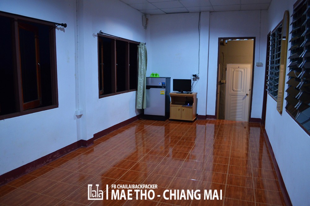 ในที่สุด ก็..มาถึง โครงการหลวงแม่โถ จนได้! ใช้เวลาเดินทาง พร้อมแวะเที่ยวรายทาง ก็ร่วมๆ 4-5 ชั่วโมง เมื่อเดินทางมาถึงก็ จอดมอเตอร์ไซค์ตรงที่จอดให้เรียบร้อย ซึ่งในช่วงเวลานี้ก็แทบจะมองอะไรไม่ค่อยเห็นกันแล้ว มีเพียงแต่แสงไฟจากส่วนกลาง และที่พัก เท่านั้น ที่พอจะให้แสงสว่างบ้าง เราได้ทักทายกับคุณกิ่งเล็กน้อย(ขณะที่คุณกิ่งกำลังง่วนกับการทำอาหารมื้อเย็นให้เราทานอยู่) จากนั้นก็มีเจ้าหน้าที่โครงการหลวงมาพาพวกเราเข้าสู่ที่พัก ซึ่งที่พักของเราในคืนนี้เป็นบ้านพักหลังใหญ่ มีทั้งหมด 3 ห้อง ที่พักจะคิดเป็นคน คนละ 150 บาท/คืน เท่านั้น ราคาถูกมากๆ มีฟูก ที่นอน ผ้าห่ม ให้พร้อม! และ.. ในคืนนี้มีเพียงแค่เรา 3 คนเท่านั้น ที่เข้ามาพัก เหมือนได้ยึดบ้านทั้งหลังเลย..