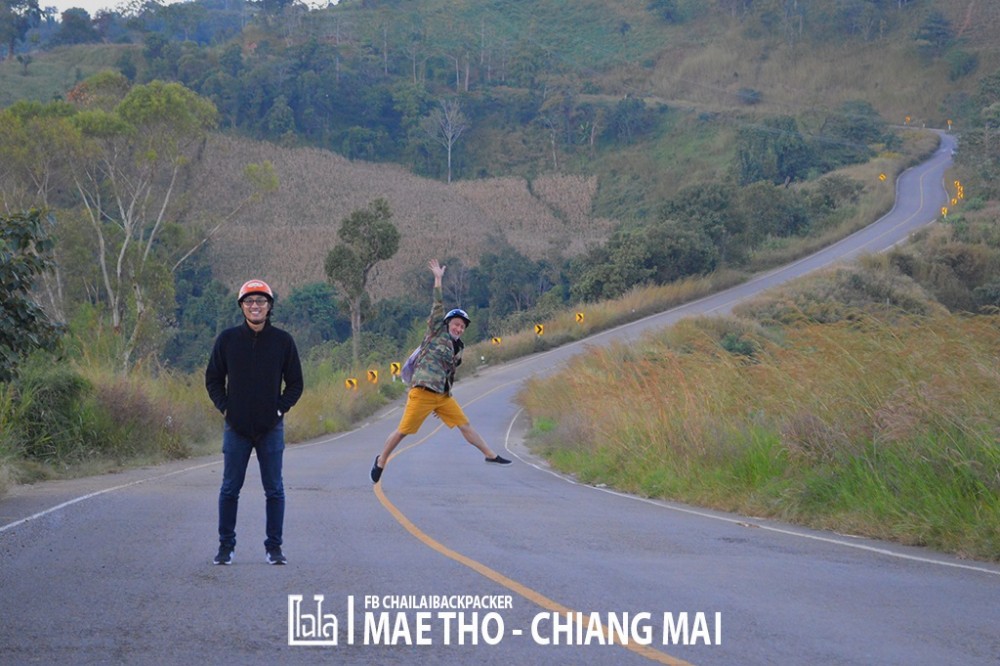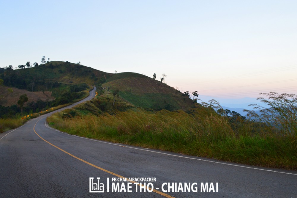 ตรงแยกบ้านกองลอย เราเลี้ยวขวาขึ้นไต่เนินเขาเพื่อไป โครงการหลวงแม่โถ จากจุดนี้ไปเหลือเพียงแค่ราว 16 กิโลเมตร เท่านั้น