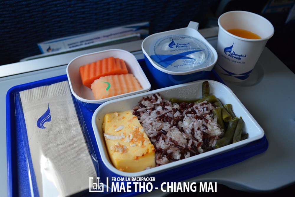 ยังรู้สึกอิ่ม.. กับอาหารในเลาจน์ อยู่เลย พอเครื่องขึ้นไปได้ไม่นาน พนักงานต้อนรับ ก็เตรียมมาเสริฟอาหาร ให้อิ่มเข้าไปอีก.. ในไฟล์ทนี้ มีผู้โดยสารเต็มลำเลย เพราะ เป็นช่วงใกล้วันหยุดยาวพอดี เมนูสำหรับไฟล์ทนี้เป็นคล้ายๆ "ข้าวไข่ตุ๋น" ตอนมาเสริฟแรกๆ เหมือนจะกินไม่ไหว เพราะอิ่มมาก่อนหน้านั้นแล้ว แต่ไปๆมาๆ กินเพลินๆ ดูวิวไปพลางๆ หมดเกลี้ยงไปซะงั้น อร่อยดี!