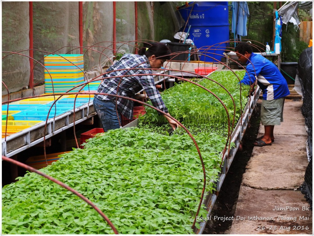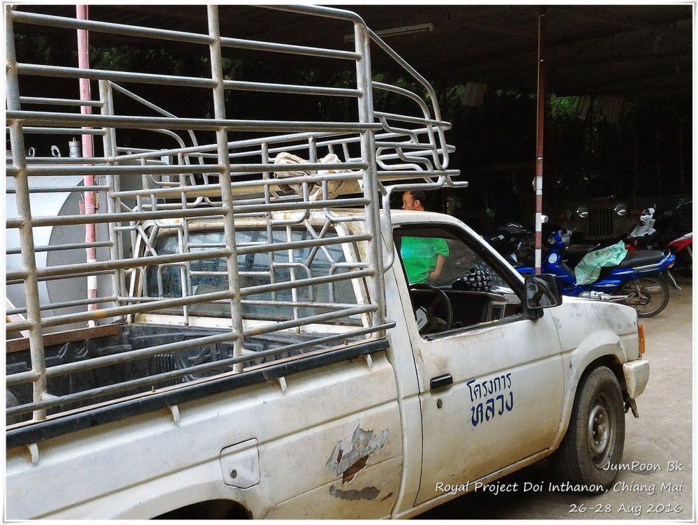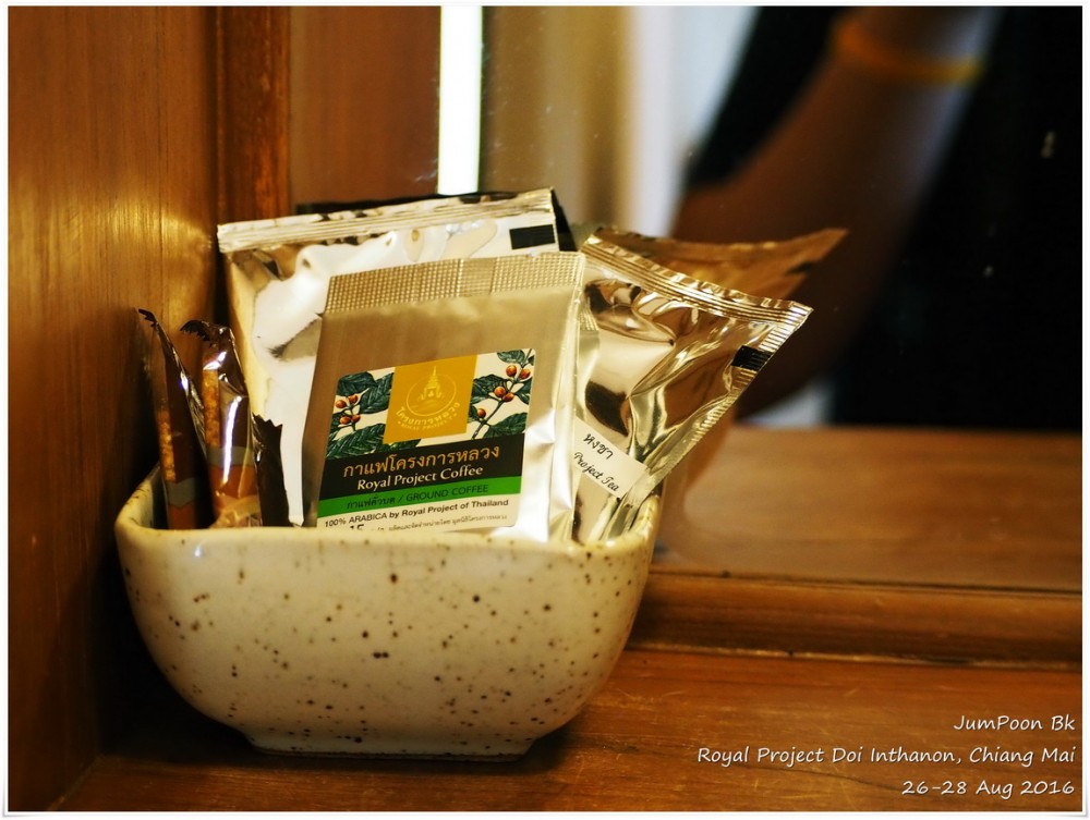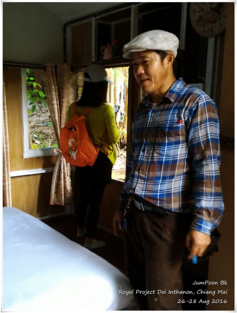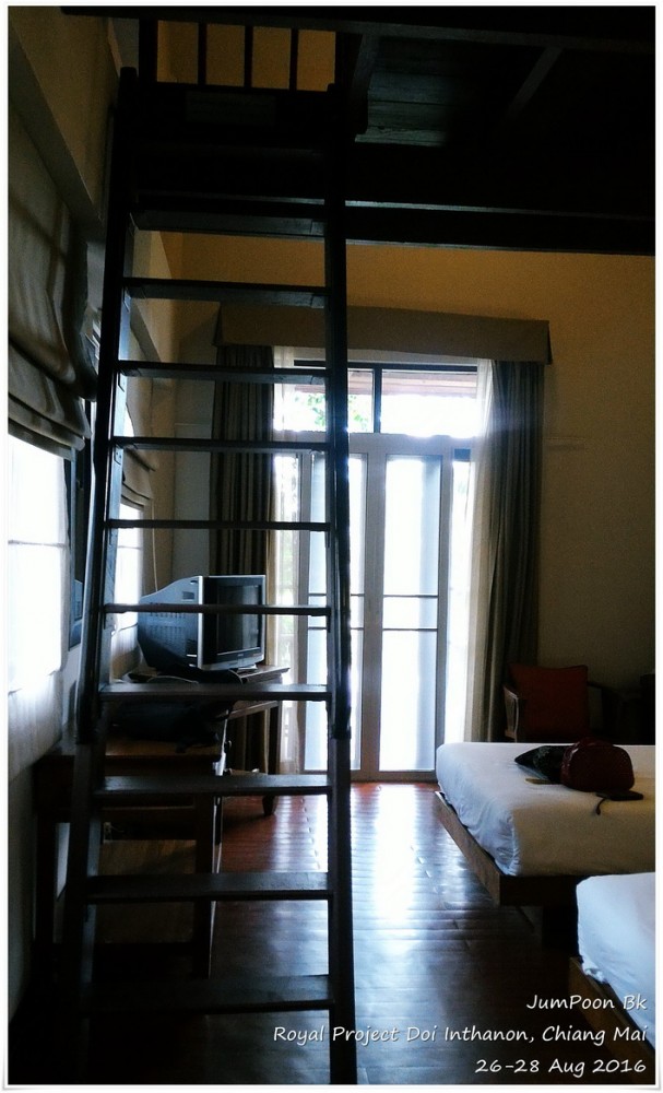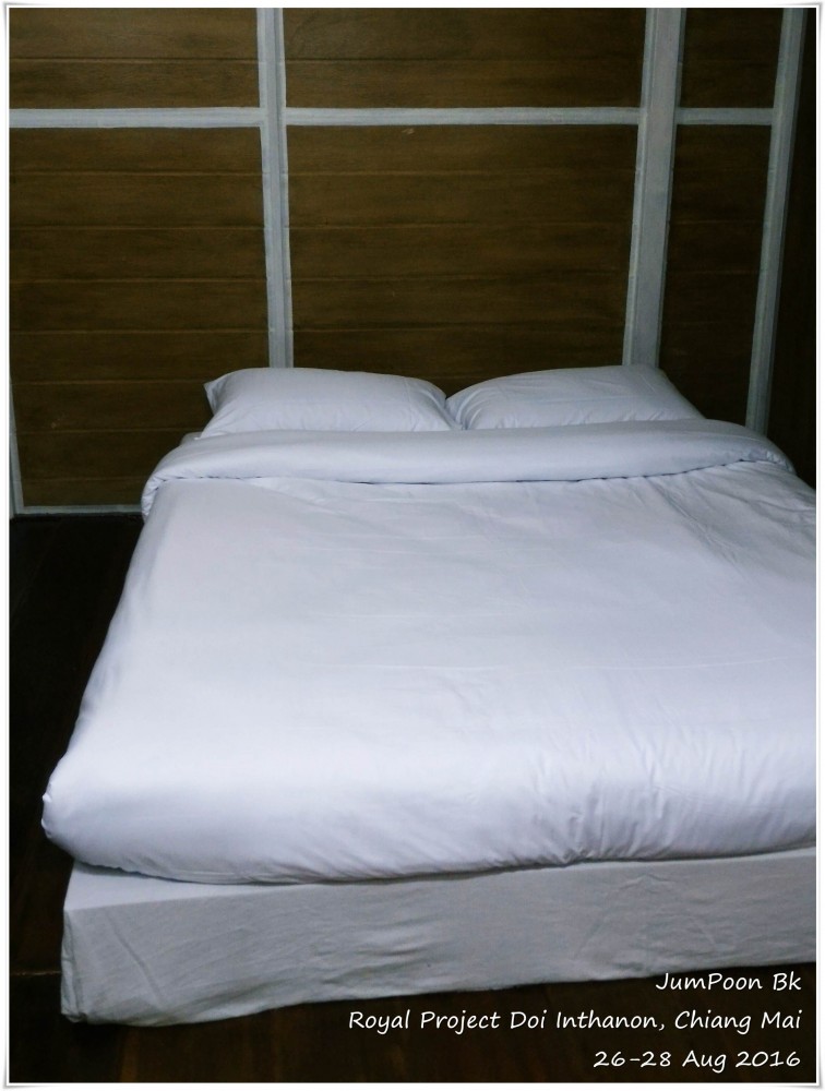 ถึงสถานีเกษตรฯ ด้วยความตื่นตาตื่นใจ ดอกไม้สวยมาก เราเช็คอินเข้าห้องพัก ระหว่างทางเดินไปห้องพัก เราผ่านอาคารผลิตผล (Packing House) ตอนเช้าเราจะเห็นรถกระบะมาจอดส่งผลผลิตที่นี่ ห้องที่เราพักชื่อสิริภูมิ B นอกจากมีเตียงห้องน้ำตามปกติ ก็มีชั้นลอยที่สามารถเพิ่มที่นอนตรงชั้นลอยห้องใต้หลังคาได้ ที่ห้องพักไม่มีแอร์ ไม่มีพัดลม แต่ก็ไม่จำเป็นเพราะอากาศเย็นอยู่แล้ว ห้องพักสะอาดสะอ้านดี มีชากาแฟสดพร้อมอุปกรณ์ให้เราลองชงด้วย สภาพห้องพักไม่ได้ใหม่มาก ในส่วนของห้องน้ำ เราว่าทางสถานีเกษตรฯ คงต้องปรับปรุงสักหน่อยก็น่าจะดีขึ้น แต่โดยรวมเราค่อนข้างพอใจกับราคา 1,100 บาท/คืน (ราคาขึ้นอยู่กับช่วงเวลาที่ไปพัก) พร้อมอาหารเช้า