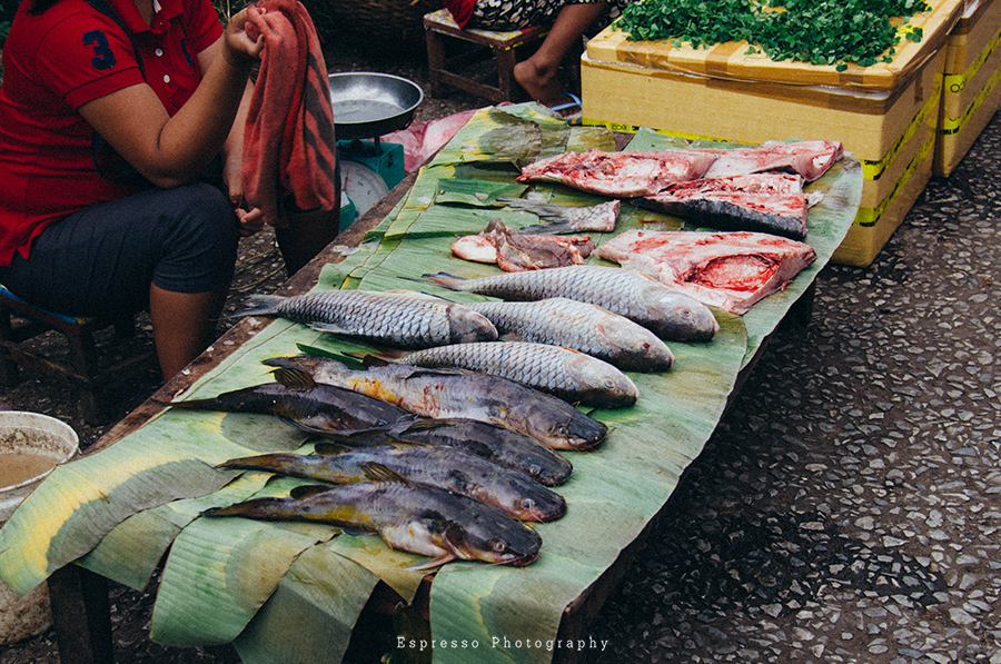 บรรยากาสของตลาดเช้าที่นี้ก็ไม่ต่างอะไรจากบ้านเรานัก อารมณ์คร้ายๆกับต่างจังหวัดเล็กๆ แต่ที่เป็นอะไรที่น่าตื่นใจเลยก็คือ ของป่าของที่นี้ หลายอย่างเราไม่อาจเจอได้ถ้าไม่ได้อยู่ในจังหวัดที่กันดารจริงๆ แล้วก็พวกเป็นไก่ขายกันสดๆ ไอ้สดที่ผมว่าเนี่ยคือมันยังร้องก๊าบๆอยู่เลยนะ