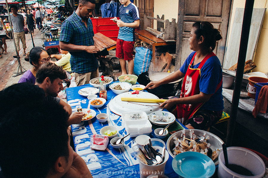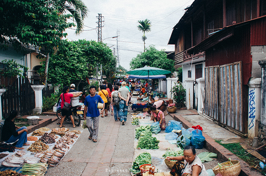 เช้าวันที่ 3 ผมนัดกับเพื่อนว่าเช้าจะตื่นมาใส่บาตรด้วยกัน ผมก็เลยตั้งนาฬิกาปรุกไว้ 6โมงเช้า แต่ที่นี้เค้าใส่บาตรกันตอนตี 5 T^T พลาดสะแล้วววว  แย่จริงๆ แต่ก็นะ ทำอะไรไม่ได้และผมก็มีนัดกับพี่รถตู่ต้องมาขึ้นรถตอน 9.30 ด้วยสิ ดังน้นขอใช้เวลาตอนนี้เดินตลาดเช้าดูเมือง หลวงพระบางยามเช้าก็แล้วกันนะ