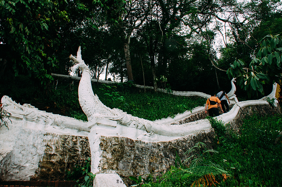 ถึงหลวงพระบางปุป ผมและเพื่อนเห็นแล้วว่าตลาดยังตั้งไม่เสร็จเลย งั้นเราขึ้นไปพระธาตุกันก่อนเลยดีกว่า เห็นได้ข่าวมาว่ามีปิดด้วย ผมเลยเดินไปพลางถ่ายรูปไปพลาง ก็ได้ฟิลยามเย็นดีเหมือนกัน