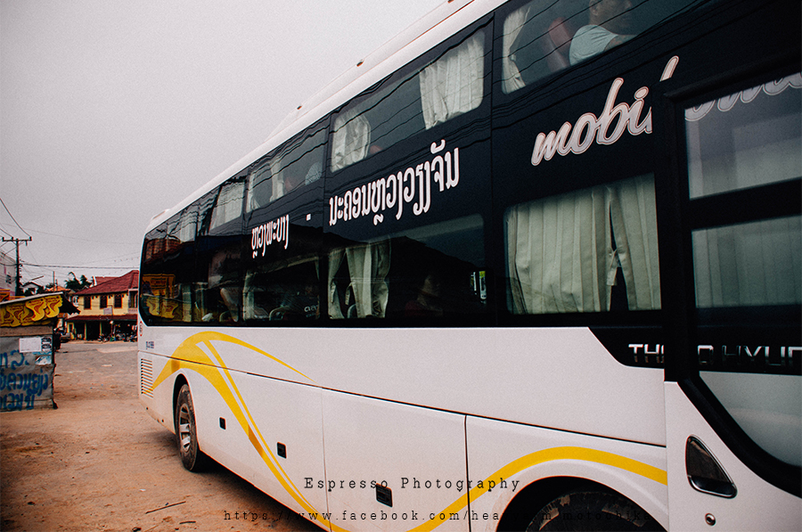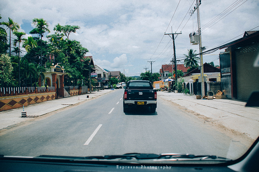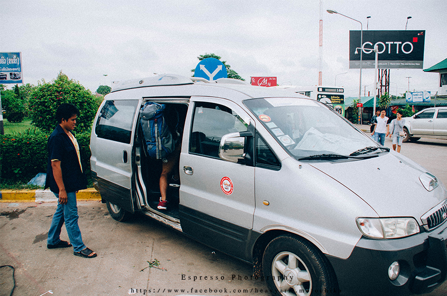 เมื่อข้ามมาถึงฝั่งลาวแล้ว ก็มีนายหน้ารถตู้ตามปกตินั้นแหละ มานู้นนี้นั่นถามหารถมั้ย แล้วก้ตามเรา บลา บลา บลาาาาา ก็เลยอ่ะๆ ขึ้นก็ได้เราไม่รู้วิธีไป บขส เพื่อตรงขึ้นไปหลวงพระบางอยู่แล้วนี้นา เค้าเก็บเราคนละ 150 แต่ก็นะ นั่งเพลินๆอ่ะ แอร์กลางๆ แต่คุณลุงคนขับทำหน้าที่ดีมาก ขับไปอธิบายเราไปว่าความเป็นมาของที่นี้เรียกว่าอะไรยังไง ถามอะไรก็ตอบได้อยางมีความรู้แบบไกด์เลยแหละ ผมเลยรู้สึกว่าโอเคนะกับราคาที่จ่ายไปไม่ซีเรียสเพราะยังไงก็เรียกเงินคืนมาไม่ได้อยู่แล้ว ฮ่าๆๆๆ
