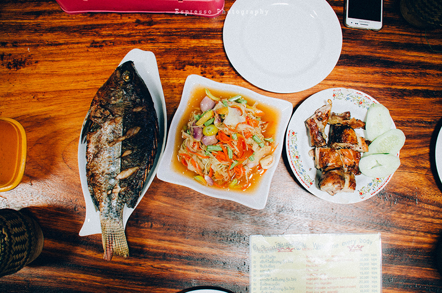 หิวอ่าา หาอะไรกินก่อนขึ้นน้ำตกกันดีกว่า มาถึงลาว ต้องกินของลาววว เด๊ยวจะสั่งส้มตำคอหมูย่างกินให้สะใจเลย  พอเดินเข้าไปสั่งในร้าน เอิ่มมมมมม ไม่มีคอหมูย่าง ฮ่าๆๆๆๆ