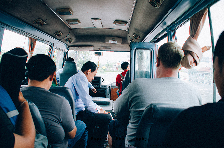 พอทำเรื่องผ่านด่านเข้าประเทศเสร็จ เราก็รีบไปต่อคิวขึ้นรถข้ามฟากกันเลย รถคันนี้อยู่ที่ ราคา 10-15 บาทนะแจ๊ะ สภาพรถใหม่มาก คล้ายกับ บขส บ้านเรา