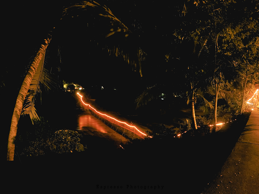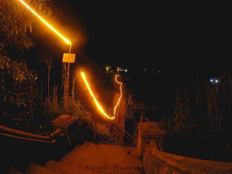 เอาล่ะ มองดูเวลานี้ก็จะ 5 ทุ่มแล้ว กลับที่พักดีกว่า พรุ่งนี้เราต้องตื่นแต่เช้ามาใส่บาตร  พอถึงที่พัก ผมก็เห็นวิวสะพานด้านหน้ามันสวยดีรึเกิน อย่ากระนั้นเลย ขอถ่ายภาพสุดท้ายก่อนนอนคืนนี้หน่อยก็แล้วกัน