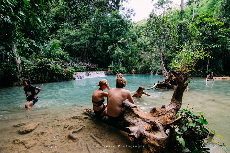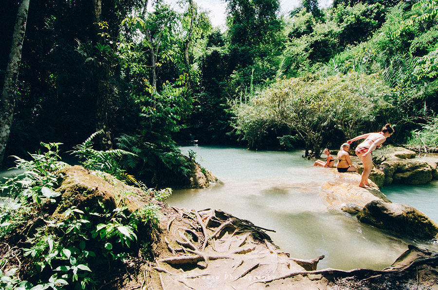 พอถึงที่พัก รถตู้ก็มารอเราอยู่ก่อนแล้ว พวกเราจึงรีบเก็บจักรยานแล้วกระโดดขึ้นรถตู้เพื่อมุ่งหน้าไปที่น้ำตก "กวานสี" กันเลยยยย