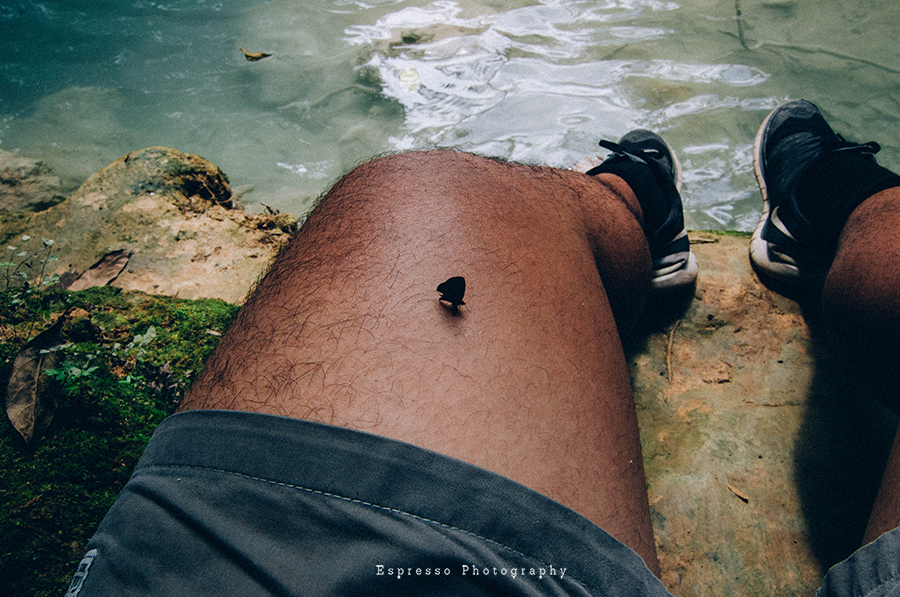 และในขณะที่ผมกำลังเพลินอยู่กับการถ่ายรูป ก็มีเจ้าผีเสื้อตัวน้อย บินมาเกาะที่ขาของผม :)  มันช่างเป็นเวลาที่แสนมีความสุขและยากจะหาสิ่งใดมาเทียบจริงๆ