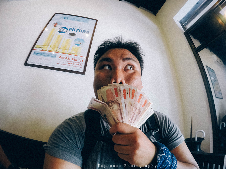 เหยดดดดด อย่างรวยอ่า เงินเป็นฝ่อนเลย   ทริปนี้ผมแลกเงินเพียงแค่ 777,000 หรือตีเป็นเงินไทยคือ 3,237  บาท จริงๆแลกไป     วิธีคิดคือ ค่าเงินจาก บาท เป็น กรีบ คือ  ตัวเลขเงิน บาท x 240 = เงินกีบ  เช่น  1,000 บาท x 240 = 24,0000 กีบ ถ้าจะคิด กรีบเป็นบาท ก็เหมือนกัน แค่เปลี่ยนจาก x เป็น หาร เข้าใจตามนี้นะงับ