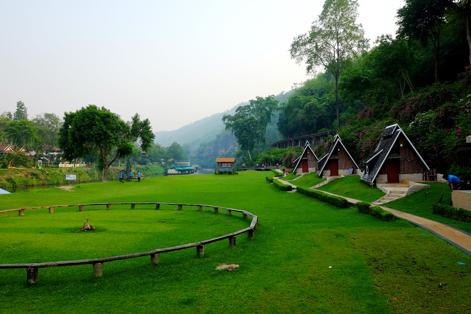 ระหว่างทางก็ชมนก ชมไม้ ชมภูเขา ชมแม่น้ำเรื่อยไปอีก 1 ชม. ก็จะมาถึงไฮไลท์สำคัญของเราครั้งนี้ คือ ทางรถไฟสายมรณะ โดยรถไฟจะหยุดจอดตรงสถานีถ้ากระแซ 1 ซึ่งอยู่ตรงหน้าสวนไทรโยครีสอร์ทพอดี ก่อนหนึ่งครั้ง ผมก็เอากระเป๋าฝากเพื่อนลงไปเก็บก่อน จากนั้นผมก็นั่งรถไฟต่อไปยังสถานีถ้ำกระแซ 2 ซึ่งเป็นเส้นทางจุดที่เป็นไฮไลท์ ระยะทางประมาณ 350 เมตร
