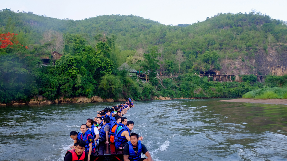ลอยตามน้ำไปมองดูวิวสะพานไปเพลินดี แต่มันก็มีจุดที่ต้องควรระวังนิดหน่อย เจ้าหน้าที่เขาจะบอกเราตั้งแต่ตอนลากเรือมาแล้วว่าอย่าเข้าไปชิดฝั่ง ให้ลอยอยู่ตรงกลางเข้าไว้ แล้วก็ให้ระวังก้อนหินที่โค้งน้ำก่อนถึงรีสอร์ท แต่ทั้งนั้นก็จะมีเจ้าหน้าที่เกาะติดไปกับเราตลอด เวลาเราออกนอกลู่นอกทาง เจ้าหน้าที่ก็จะคอยช่วยลากกลับมาให้ ทำให้ไม่น่ากลัว สนุกดี ๆ
