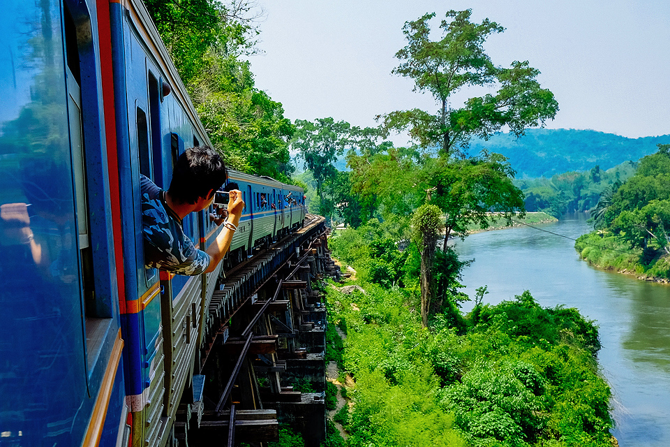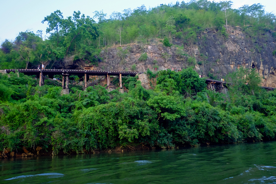 ถ้านั่งฝั่งซ้ายมือ จะเห็นแม่น้ำและสะพาน ถ้านั่ง ขวามือ จะติดหน้าผา โชคดีที่ผมได้นั่งด้านซ้ายพอดี
