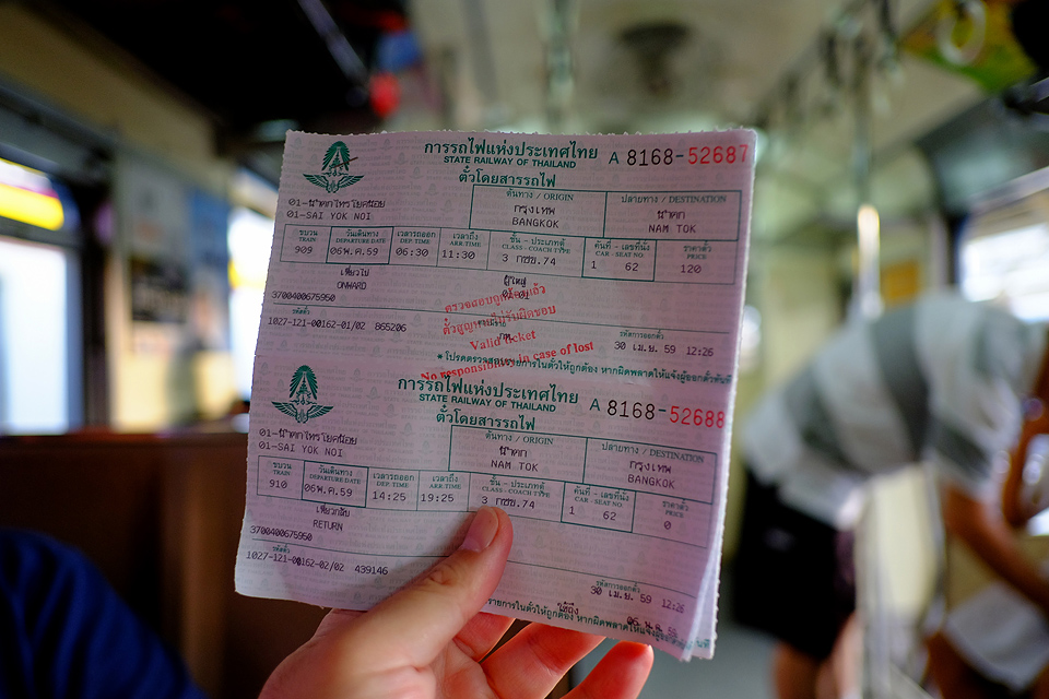 การเดินทางครั้งนี้ของผม เลือกใช้บริการรถไฟขบวนท่องเที่ยวสายน้ำตก ของการรถไฟ ซึ่งจะมีออกเดินทางทุกวัน โดยจะมีเฉพาะตู้ที่นั่งแบบชั้นสามประเภทตู้พัดลมเท่านั้น แต่ก่อนเขาเคยมีตู้แอร์ให้บริการ แต่ก็ไม่ค่อยมีคนใช้บริการ ตู้แอร์เลยต้องยกเลิกไป รถไฟจะออกเดินทางจากสถานีรถไฟหัวลำโพง เวลา 6.30 น.