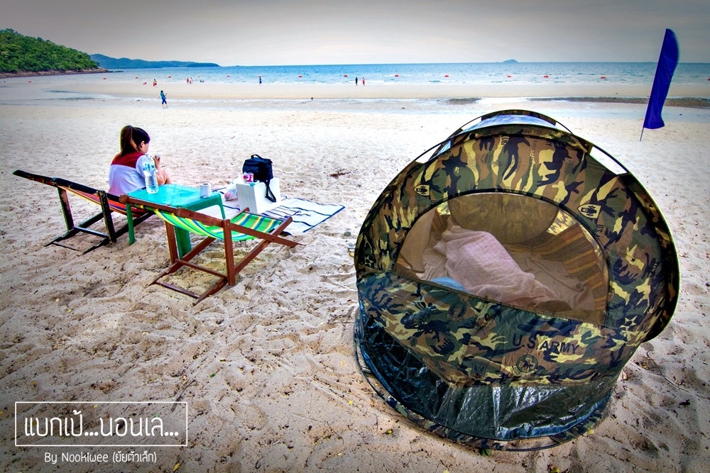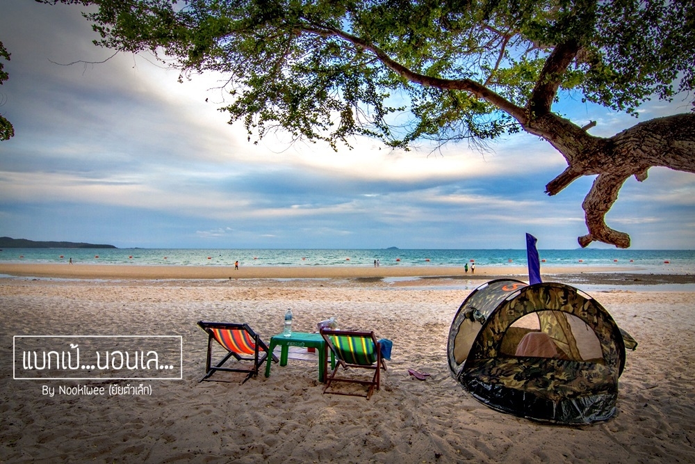 คอนเซปหลักของเราวันนี้ คือ พวกเราจะนอนเต้นท์ริมหาด โดยเราเช่าเต้นท์จากทางสวัสดิการของทหารค่ะ เค้าคิดหลังละ 300 บาท มีเครื่องนอนให้เรียบร้อยเลย ถ้าจะนำเต้นท์มากางเองก็ได้ เค้าจะคิดค่ากางเต้นท์ 50 บาท อย่างที่บอก พวกเรามีเเค่เป้กันคนละใบ ^^