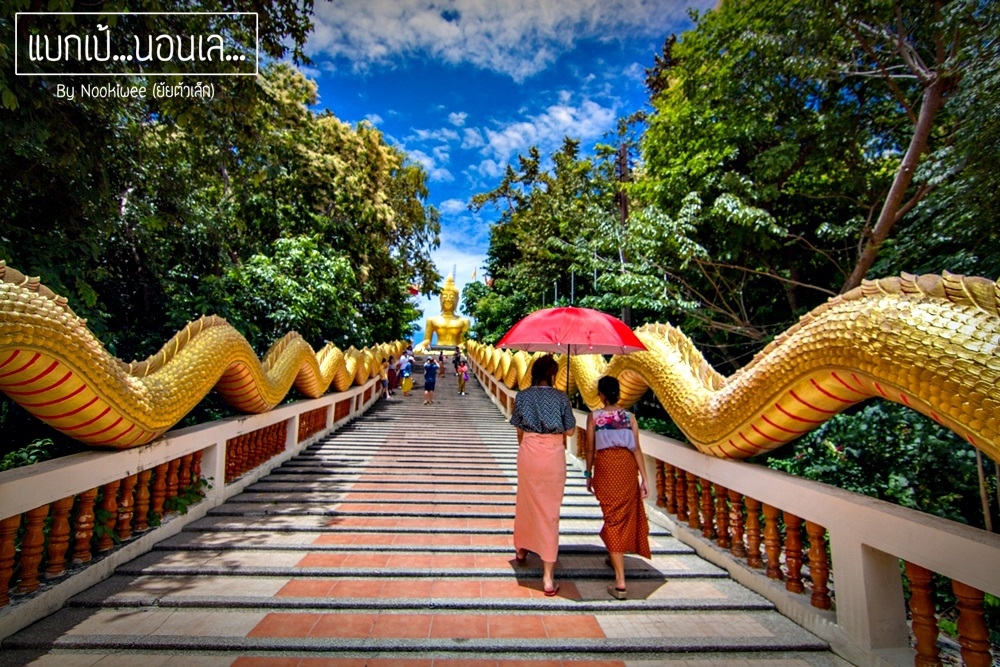 เรานั่งเม้าท์มอยกันตามประสาอีกสักพักหนึ่ง ระหว่างทางขึ้นเขา สทร. มองเห็นพระพุทธรูปองค์ใหญ่ประดิษฐานอยู่บนยอดเขา นั่นล่ะเป้าหมายของเราต่อไปค่ะ!!!!