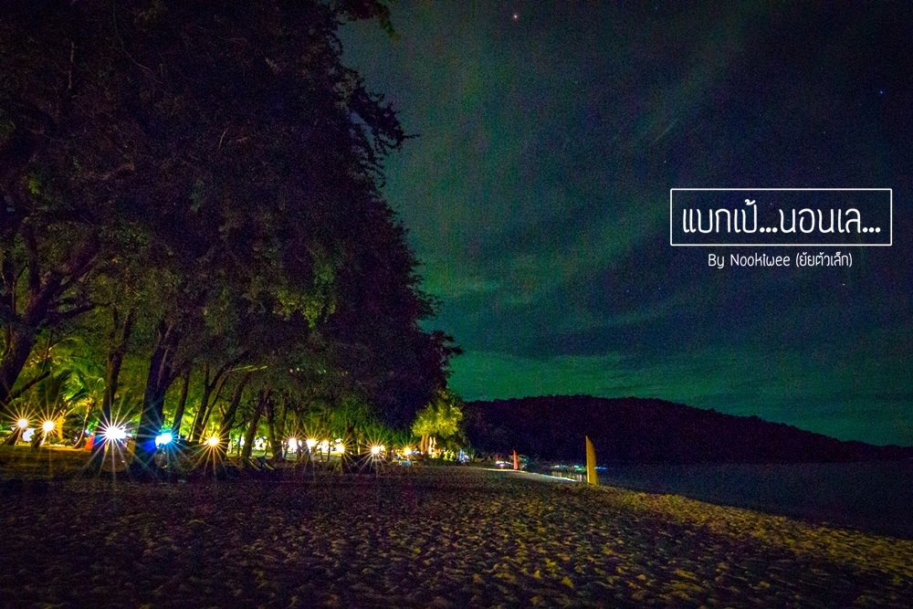 หลังจากนั้นไม่นาน ดวงอาทิตย์ก็เริ่มลับขอบฟ้าไป พวกเราคุยกันเพลิน จนบรรยากาศเริ่มเงียบสงบมาก (เพราะทุกคนต้องออกจากหาดภายใน 6 โมงเย็น ยกเว้นคนที่พักค้าง) เหมือนกับว่าที่เเห่งนี้มีเเค่กลุ่มเราเพียงกลุ่มเดียว เรานอนคุยกัน นอนฟังเสียงคลื่น และก็นอนมองดูดาว ยุงนี่แทบไม่ต้องกังวลเลย ไม่มีเลย น้องเรายังเห็นดาวตกด้วยล่ะ อันที่จริงถ้าเป็นเดือนมืดสามารถมองเห็นทางช้างเผือกได้เลย