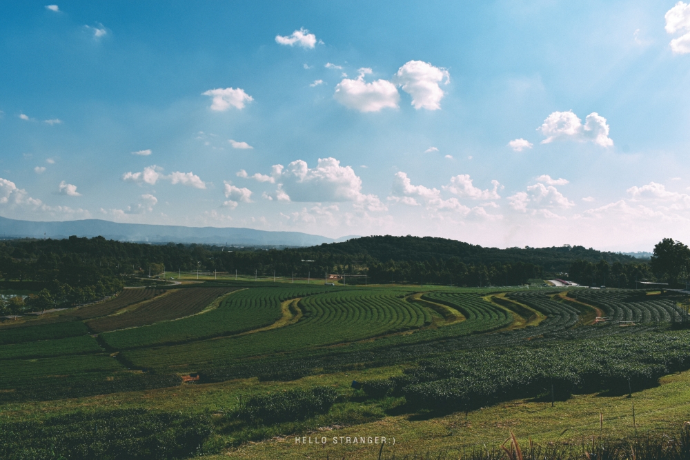 จุดชมวิวไร่ชาภายในสิงห์ปาร์คใกล้ๆ กับร้านอาหารภูภิรมย์ สามารถมองเห็นไร่ชาที่ปลูกเป็นขั้นบันได โค้งวนไปตามไหล่เขาได้อย่างชัดเจน รูปนี้ถ่ายด้วย SuperPhoto ที่เปิดการถ่ายแบบ HDR ช่วยให้เก็บความละเอียดของก้อนเมฆได้เป็นอย่างดีเลย