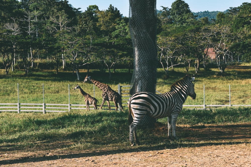 นอกจากม้าลายแล้ว ก็ยังมียีราฟด้วย แต่เหมือนมันจะขี้อาย เดินหลบซะไกลเชียว