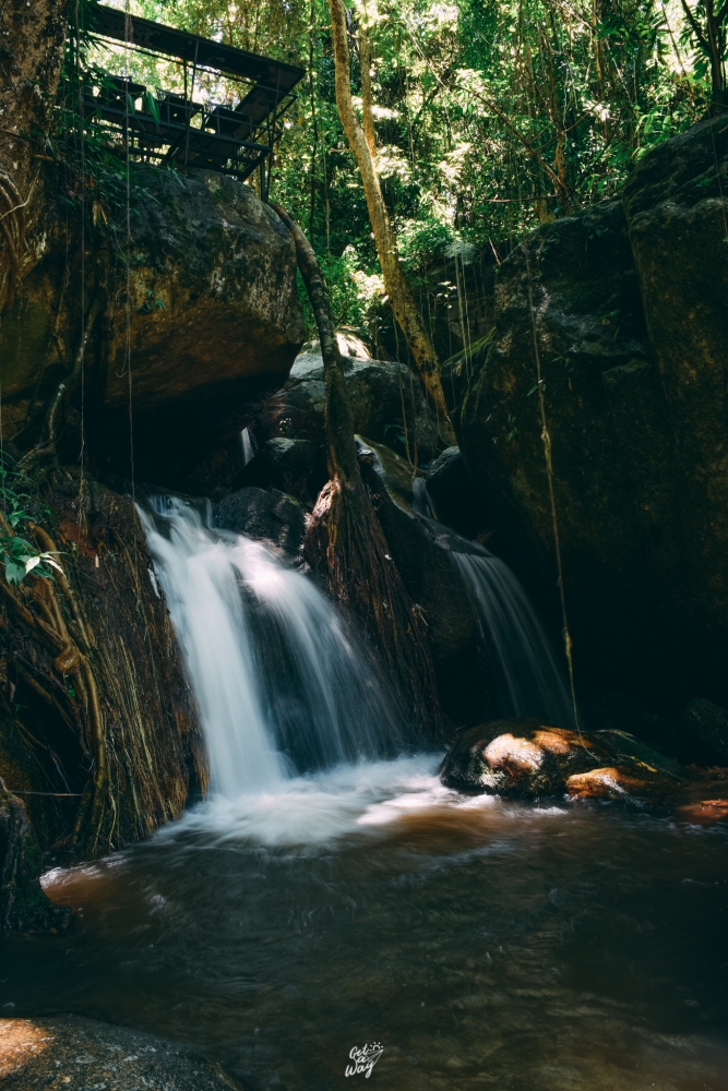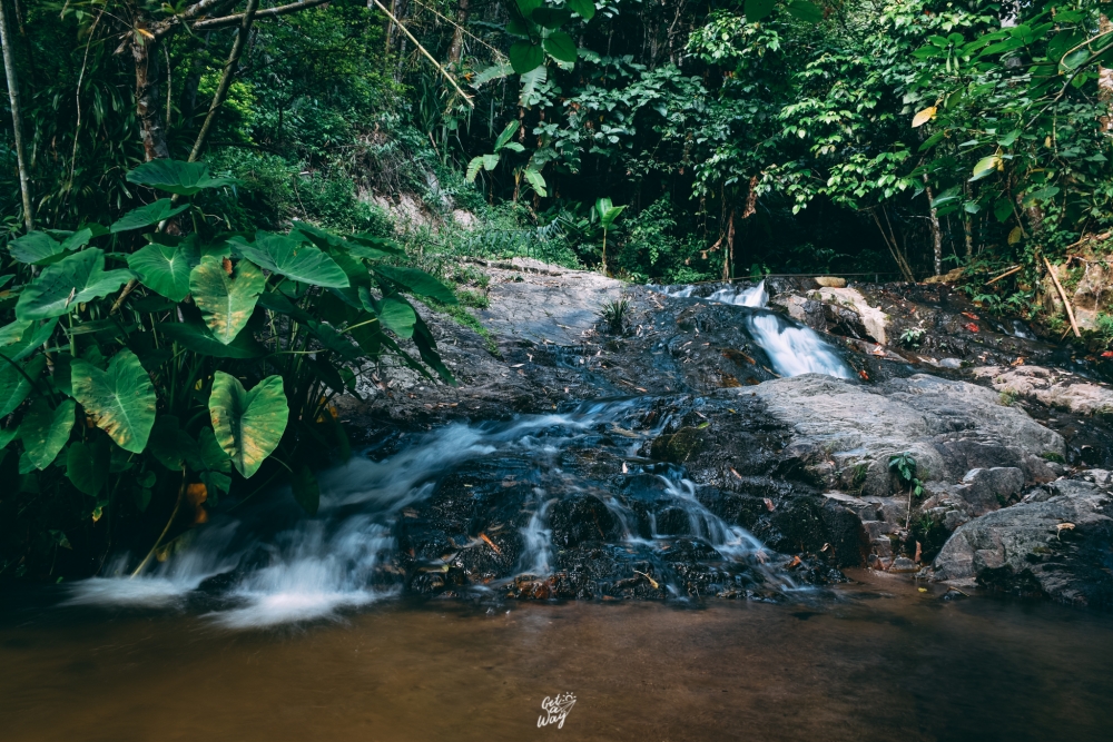 จากร้านชมนกชมไม้เดินเลยขึ้นไปประมาณ 500 เมตร จะพบกับ น้ำตกแม่กำปอง