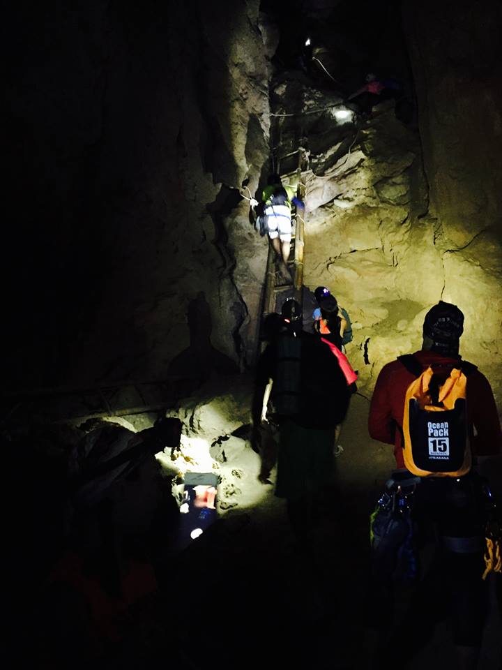 ในถ้ำแสงเข้าไม่ถึง แม้ระยะทางไม่ไกล แต่ต้องปีนบันไดสูงและชัน ต้องพกไฟฉายคาดหัวไปด้วย
