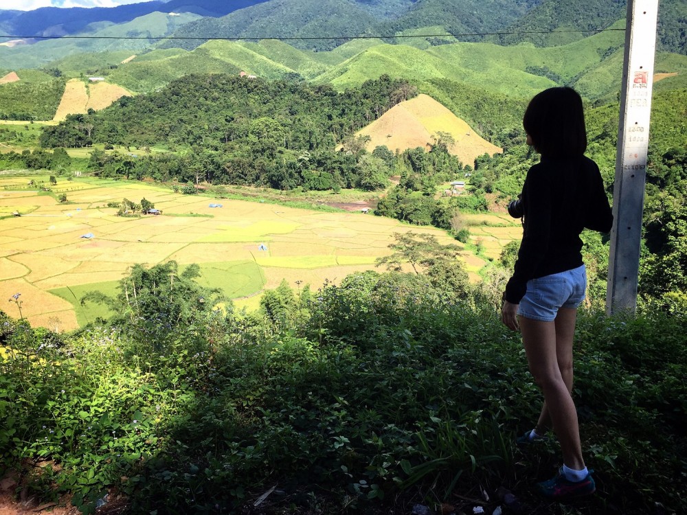 พี่เจ้าของแนะนำมาว่าเลยขึ้นไปจะมีน้ำตกสะปัน ให้ลองไปเที่ยวเล่นได้ เราก็เลยตัดสินใจเอากระเป๋าไปเก็บแล้วไปเที่ยวน้ำตกดีกว่า ระหว่างทางที่ไปก็วิวสวยอีก