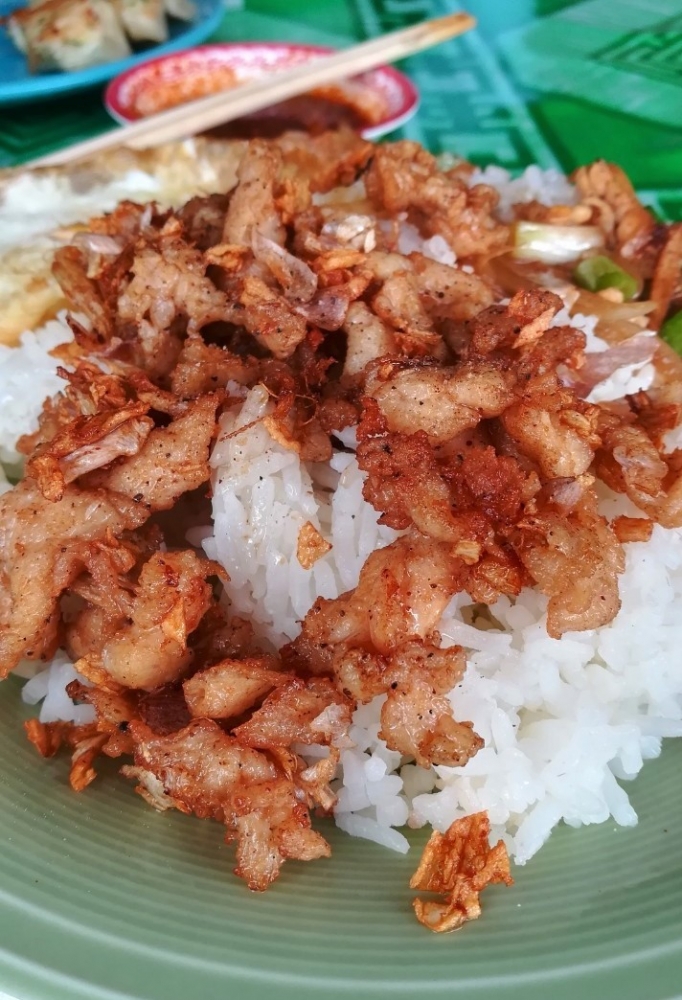 บรรยากาศเงียบสงบ และสวยงามรวมถึงบรรดาผู้คนที่เป็นลูกครึ่งจีน-พม่าบ้าง ไทยภูเขาบ้าง สังเกตเห็น สาวๆ ในหมู่บ้านหน้าตาสวยงาม น่ารัก และหุ่นดีไม่ค่อยเจอคนเจ้าเนื้อสักเทา่ไร เราเดินลัดเลาะตามถนนหลักของหมู่บ้าน และแล้วก็มาเจอร้านข้าวซอยอิสลาม เปิดอยู่จึงเข้าไปสั่งอาหาร ได้รับการต้อนรับอย่างดีของเจ้าของร้าน ที่เราเอ่ยอยากกินอาหารที่เป็นซิกเนเจอร์ของร้าน พี่เจ้าของจึงแนะนำเกี๊ยวซ่ามาให้ 1 ชุด ข้าวไก่กระเทียม และไก่ผัดขิงราดข้าว ขอบอกไว้ ณ ตรงนี้เลยว่า อร่อยมว๊ากกกกก ไก่เนื้อนุ่ม กระเทียมหอมและรสชาติกลมกล่อมแอบรู้เคล็ดลับของทางร้านว่าจะใช้กระเทียมโทนและไม่ใส่น้ำมันหอย แต่จะมีซอสที่หมักเอง ที่สำคัญใส่ขิงไปเล็กน้อย สุดยอดมากกกกก
