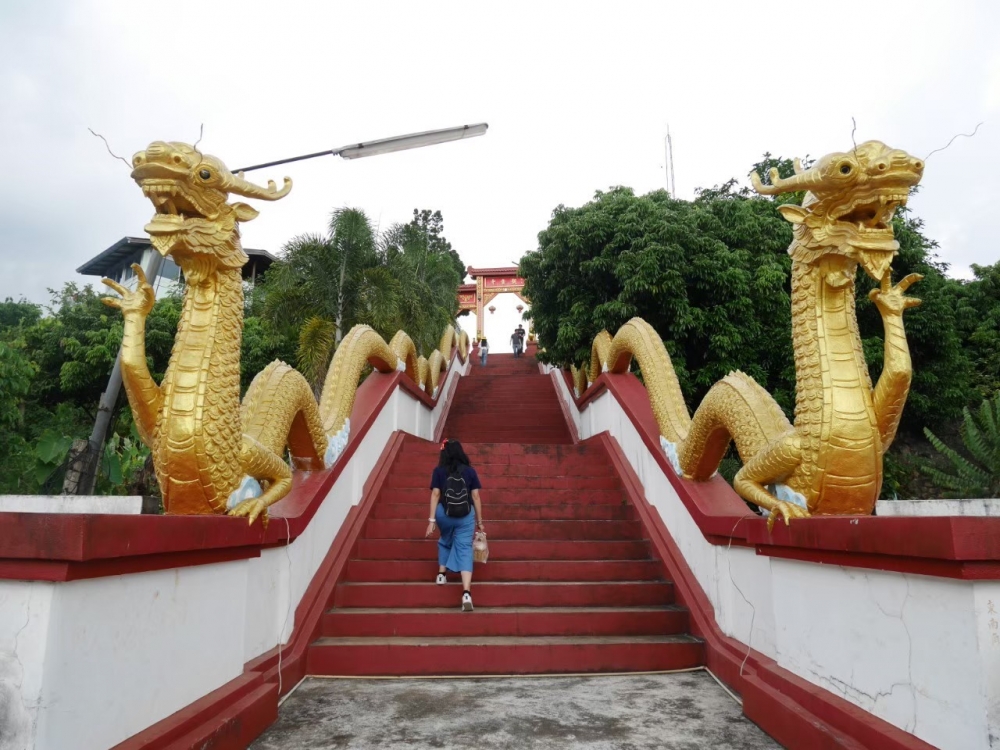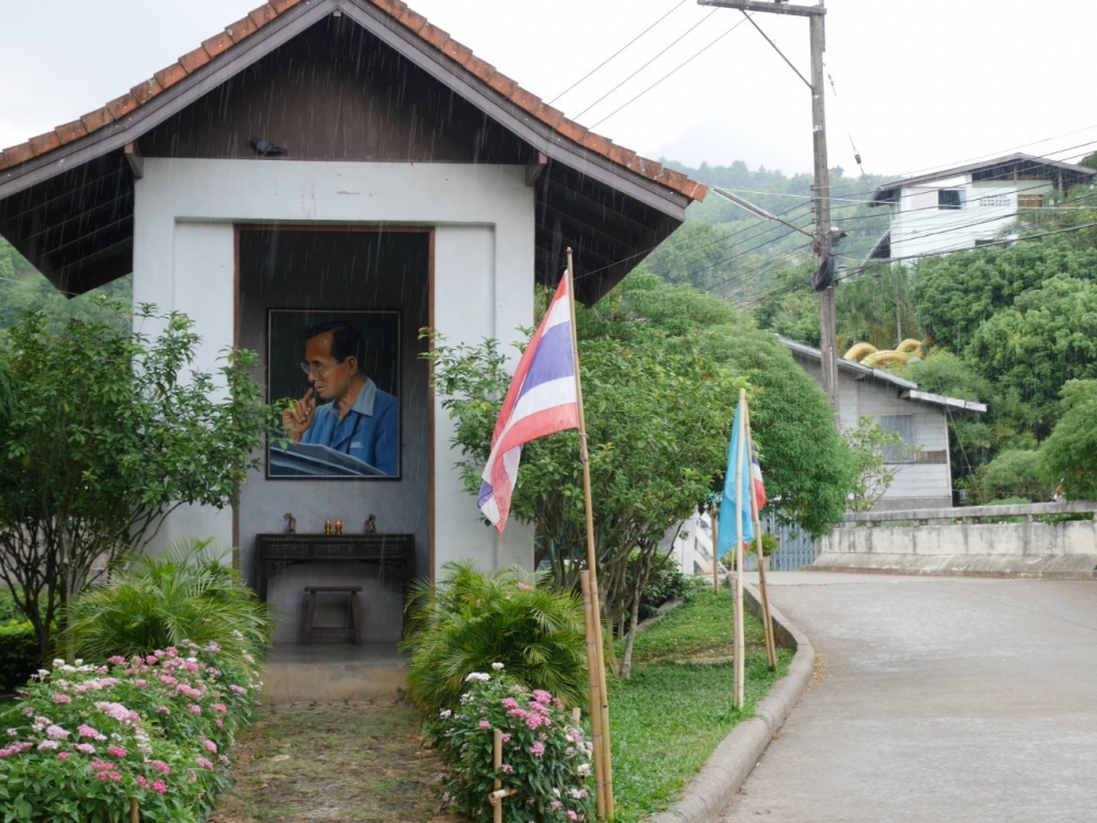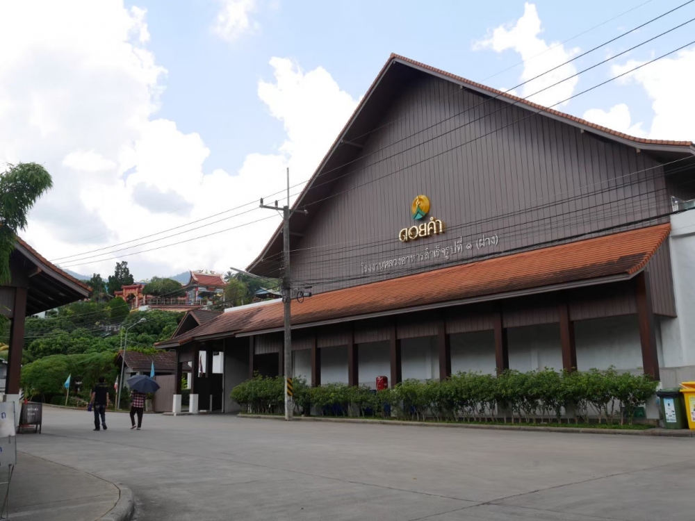 เราเดินผ่านโรงงานหลวงที่1 ฝาง (ดอยคำ) เพื่อแวะวัด ซึ่งเป็นวัดที่พระบาทสมเด็จพระปรมินทรมหาภูมิพลอดุลยดช ทรงพระราชทานที่ดินสำหรับสร้างวัดนี้