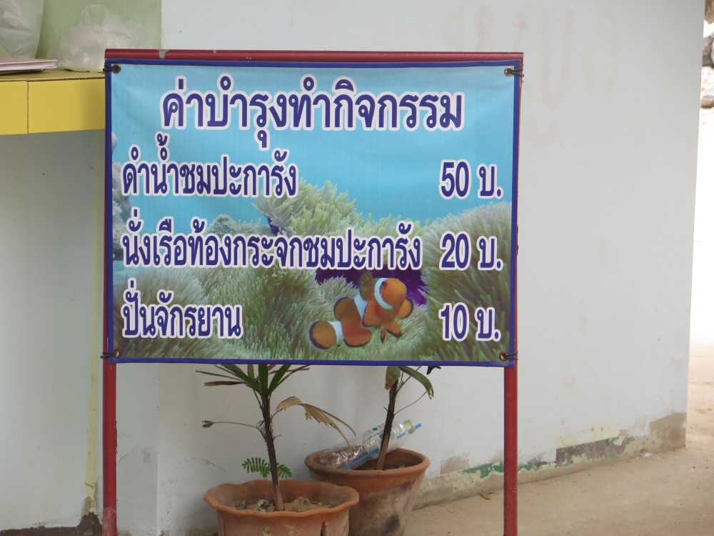 ที่นี้มีกิจกรรมให้เลือกทำหลายอย่าง ราคาตามป้าย แต่กิจกรรมสุดฮิตคือ ดำน้ำชมปะการัง คิวยาวมากเพราะพี่ทหารต้องคอยจัดคิว อ่ะอ่ะ!!! เห็นขวดน้ำที่กระถางไหม นี่ก็เป็นผลงานหนึ่งของนักท่องเที่ยวที่ไร้ระเบียบ ซึ่งบนเกาะเขามีถังแยกขยะเปียก ขยะแห้ง และขวดน้ำพลาสติกนะค่ะ
