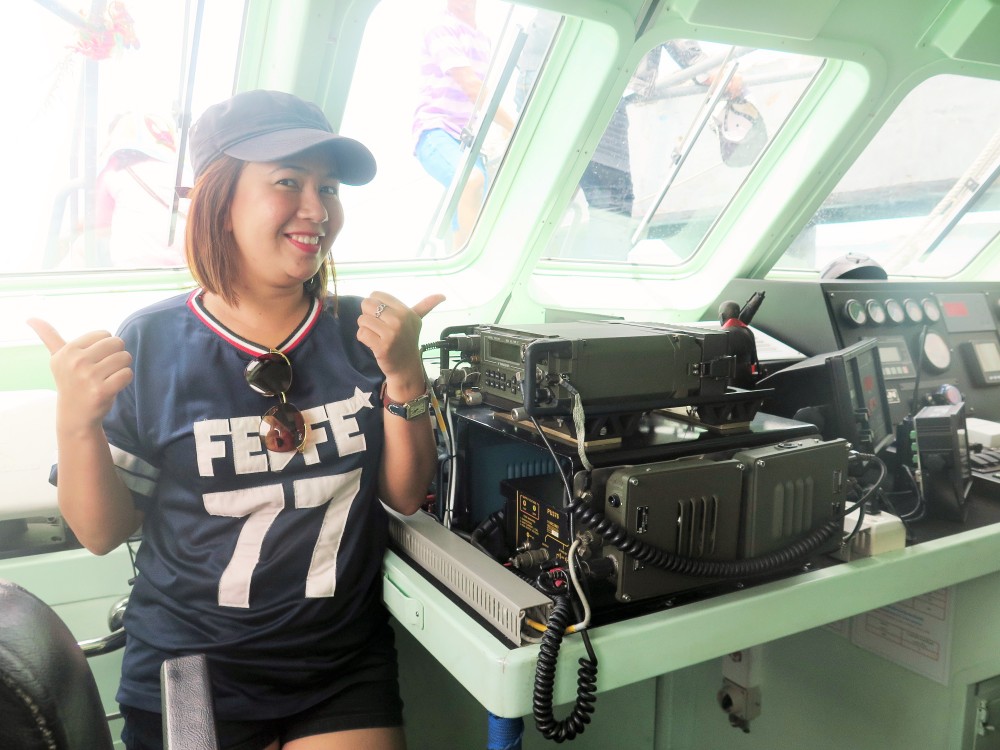 พอขึ้นไปบนเรือ เตรียมตัวอาบแดดเต็มที่ แต่พี่ทหารบอกข้างล่างลงไปนั่งได้นะ เป็นห้องแแอร์ ได้ยินแค่นั้นรีบกระโจนเลยค่ะ ตอนนี้ไม่อยากได้ผิวสีแทนขาวแล้ว 555