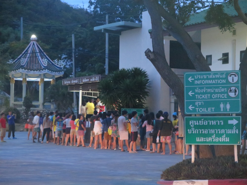 จนแล้วจนรอดก็ได้คิวขึ้นเรือ เที่ยว 11 โมง เที่ยวแรกของเรือคือ 9.00 น. ออกทุก 1 ชั่วโมง ขาไปจะมีจนถึง 13.00 น. แต่ละเที่ยวอยู่ที่ 100 คน รับบัตรคิวเสร็จประมาณ 7.00 น. แต่ตัวเองได้คิวตั้งแต่ 6.15 น.