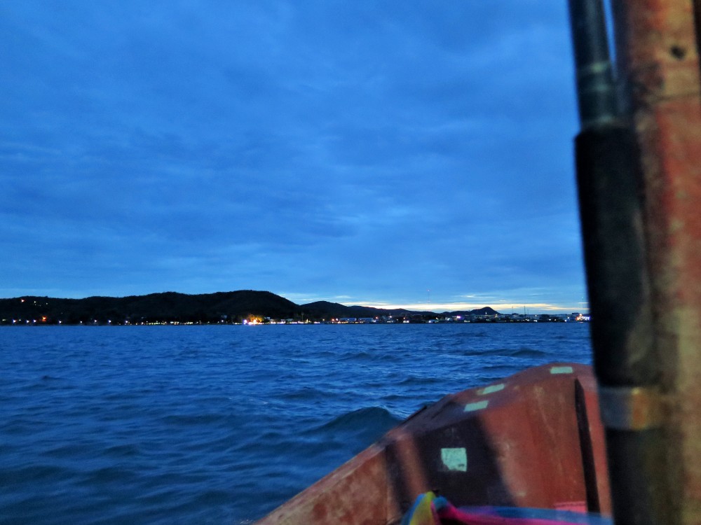 หนุกหนานกันได้แป๊ปเดียวพระอาทิตย์เริ่มตกขอบฟ้า พี่อ้อยจึงให้พวกเรากลับก่อนที่จะมึดค่ำ วิวยามย่ำค่ำก็งามไปอีกแบบ เสียดายมารอบนี้ไม่ได้ถ่ายรูปเจ้าถิ่น คือเจ้ากังฟู หมาพันธุโกลเด้นตัวใหญ่หน้าตาน่ารักขี้เล่น ตอนที่ไปถึงเกาะเจ้ากังฟูไปนั่งเรือเล่นอยู่กลางทะเลซะนี่