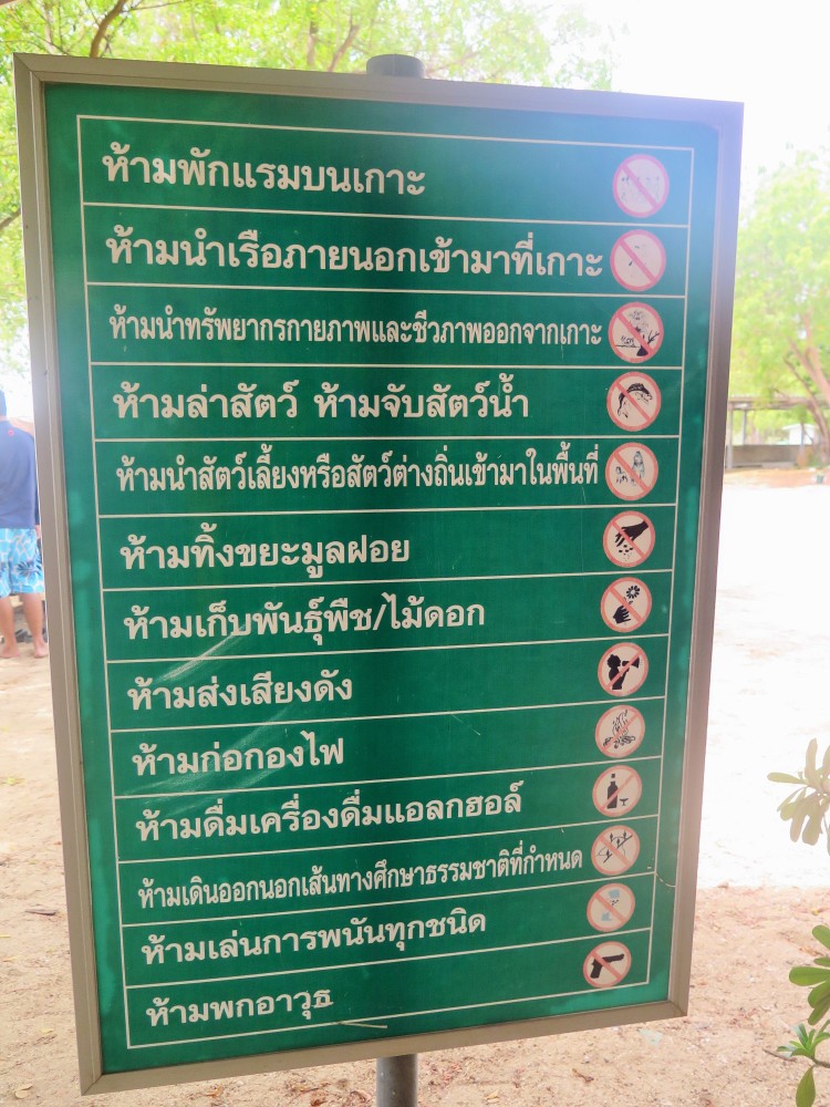 ข้อห้ามต่างๆ บนเกาะที่นักท่องเที่ยวไม่ควรทำ นี่เป็นด่านแรกที่นักท่องเที่ยวต้องเรียนรู้และทำความเข้าใจ พี่ทหารจะชี้แจงให้ฟังทุกคณะที่มาใหม่ (สงสารเหมือนกันต้องพูดทั้งวัน)
