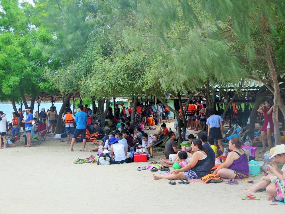 นั่งเรือเพียงอึดใจ (ไม่ได้จับเวลาเพราะมัวแต่คุยกะพี่ทหารอยู่) ก็ถึงเกาะ ผู้คนที่มารอบแรกทั้งนั่ง นอน เล่นน้ำกันเป็นกลุ่ม ๆ แดดไม่แรงมากแต่ก็ทำให้แสบผิวได้เหมือนกัน