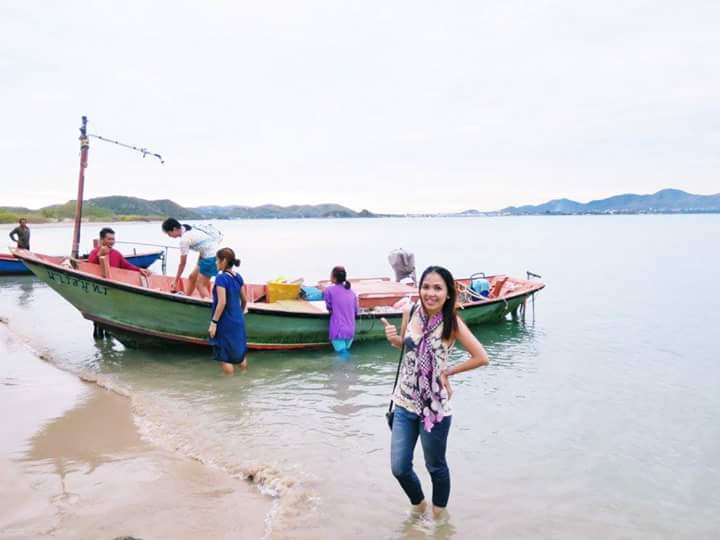 ถึงแล้ว เกาะหมู พี่อ้อยบอกตอนนี้น้ำทะเลขึ้นมาก เลยสามารถจอดเรือใกล้ฝั่งไม่ต้องเดินไกล อยากจะบอกว่า รู้ไว้ซะว่ามากะใคร อุตส่าห์ไปไหว้พระขอพรมาแล้ว งานนี้มีเล่นของค่ะ 5555